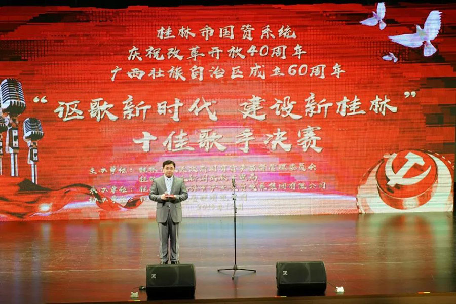本次比賽旨在慶祝中華人民共和國成立69 周年、廣西壯族自治區(qū)成立60 周年,禮贊黨的十九大描繪的新時(shí)代宏偉藍(lán)圖。豐富國資系統(tǒng)干部職工的業(yè)余文化生活,謳歌國資系統(tǒng)干部職工圓夢(mèng)新時(shí)代、建功新時(shí)代的豪情壯志,增強(qiáng)國資系統(tǒng)干部職工投身桂林國際旅游勝地建設(shè)的緊迫感、責(zé)任感和使命感。