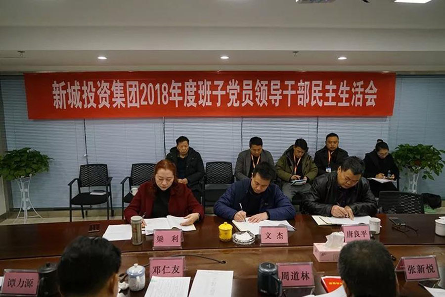 1月30日上午,新城投資集團(tuán)2018年度黨員領(lǐng)導(dǎo)干部民主生活會在新城商務(wù)酒店辦公樓1513會議室召開。這次民主生活會,以“強(qiáng)化創(chuàng)新理論武裝,樹牢‘四個意識’,堅定‘四個自信’,勇于擔(dān)當(dāng)作為,以求真務(wù)實(shí)作風(fēng)堅決把黨中央決策部署落到實(shí)處”為主題。
