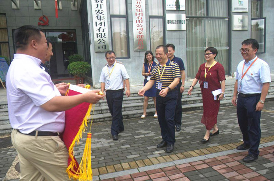 所謂綠水青山就是金山銀山,為村民們積極籌集資金清理和修復(fù)河堤,不僅保護(hù)了村里的青山綠水,同時(shí)也保護(hù)了村民的人身安全及財(cái)產(chǎn)安全。新城投資集團(tuán)黨支部在臨桂新區(qū)工委和臨桂區(qū)直屬機(jī)關(guān)工委的具體指導(dǎo)下,積極踐行黨的十九大精神,用實(shí)際行動(dòng)為群眾解決難題,辦實(shí)事,辦好事,得到了下頭陂村村民的一致認(rèn)可和稱贊。村委經(jīng)過(guò)集體商量,一致決定給新城投資集團(tuán)黨支部送上“黨旗映勝地,溫暖千萬(wàn)家”的錦旗;給工會(huì)送上“情系群眾,為民解憂”的錦旗,表達(dá)了村民們對(duì)新城投資集團(tuán)給予的支持和幫助致以誠(chéng)摯的謝意。