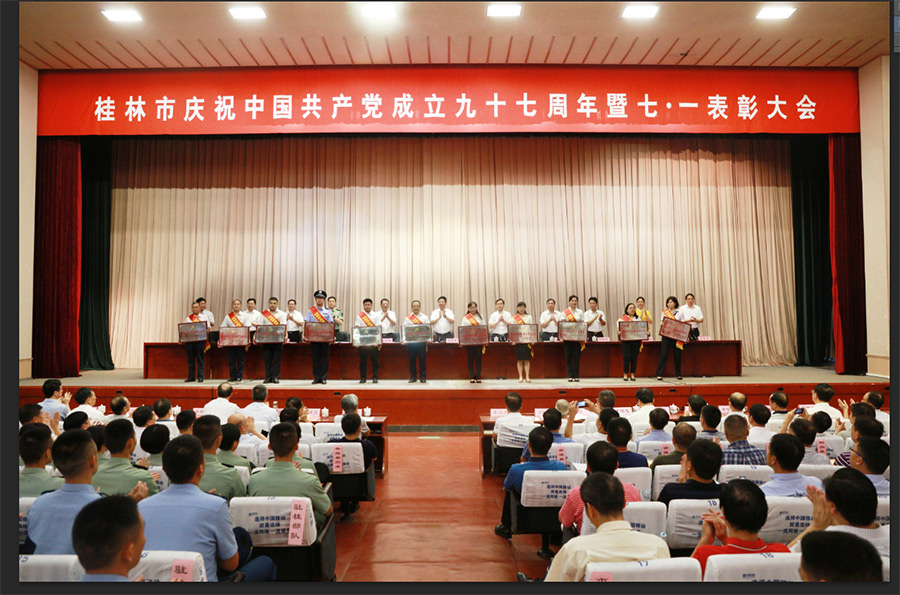 2018年6月29日上午,在桂林市直機(jī)關(guān)小禮堂舉行的桂林市慶祝中國共產(chǎn)黨成立九十七周年暨七·一表彰大會上,表揚了全市先進(jìn)基層黨組織、優(yōu)秀共產(chǎn)黨員、優(yōu)秀黨務(wù)工作者,新城投資集團(tuán)黨支部榮獲“桂林市先進(jìn)基層黨組織”稱號,黨支部書記周道林代表新城投資集團(tuán)黨支部參加了此次表彰大會。