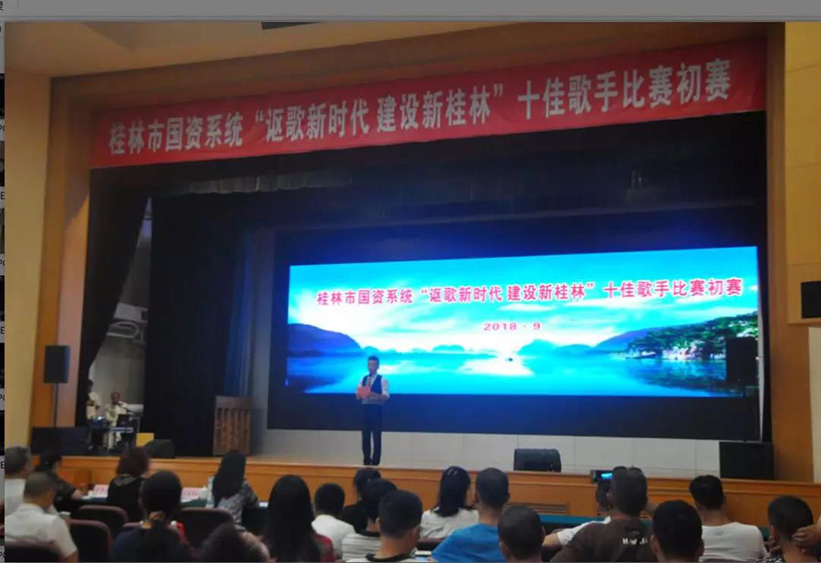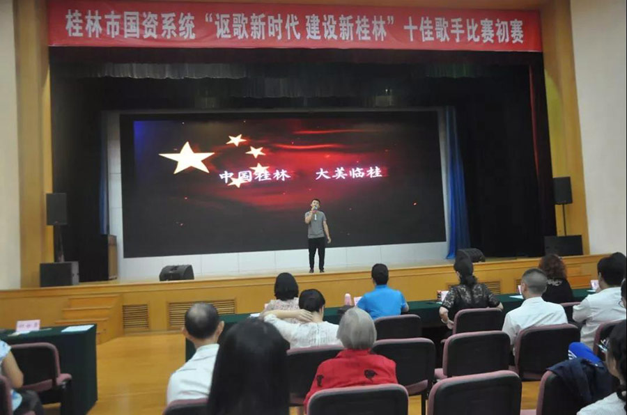圖為“謳歌新時(shí)代、建設(shè)新桂林”十佳歌手比賽初賽現(xiàn)場(chǎng)