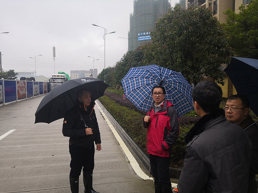 在臨桂新區(qū)工委委員、管委會常務副主任李星明帶領下,新城投資集團黨支部書記、總經(jīng)理周道林等人第一時間趕到致遠路周邊受災現(xiàn)場,冒雨兵分兩路察看水情,李星明帶領一隊人員察看花生唐末端排泄情況,周道林帶另一隊人員在醫(yī)學院有關人員的引導下察看醫(yī)學院內(nèi)澇情況,調(diào)取醫(yī)學院排水管線圖紙,做出排澇預案,并緊急聯(lián)系施工單位調(diào)用兩臺大功率水泵提供給醫(yī)學院使用。
