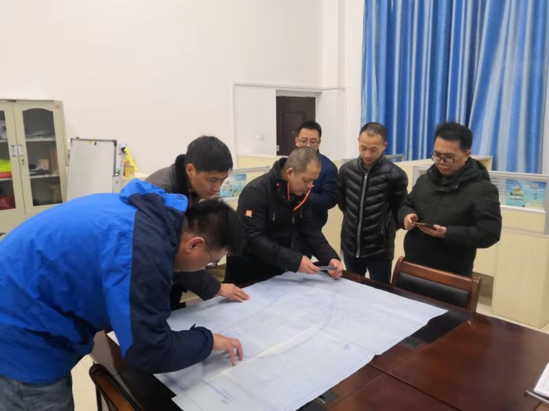 圖為新城投資集團黨支部書記、總經(jīng)理周道林在醫(yī)學院調(diào)取排水管線圖紙做排澇預案