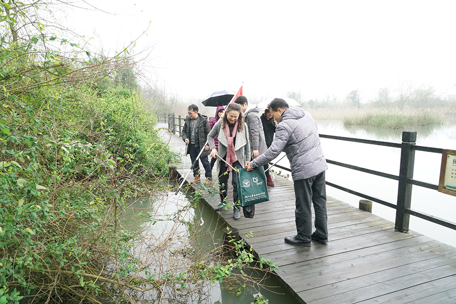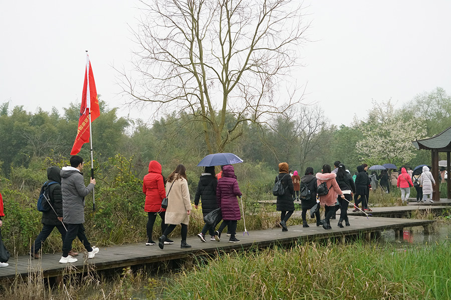 桂林會仙濕地管理局為“會仙濕地洗臉”環(huán)保徒步活動提供了向導并安排專人講解了規(guī)劃。婦女同志在濕地宣教館觀看宣傳片后,分別領取鐵鉗、垃圾袋,沿著濕地棧道方向,邊走邊用鐵鉗拾撿著路邊的食品袋、塑料袋、飲料瓶等污染垃圾,不一會兒功夫,大伙兒拎著的垃圾袋已快填充裝滿。過往的群眾為婦女同志不怕臟不怕累的志愿行動所感動,紛紛豎起大拇指點贊,部分群眾還自發(fā)的加入為濕地洗臉公益環(huán)保活動。