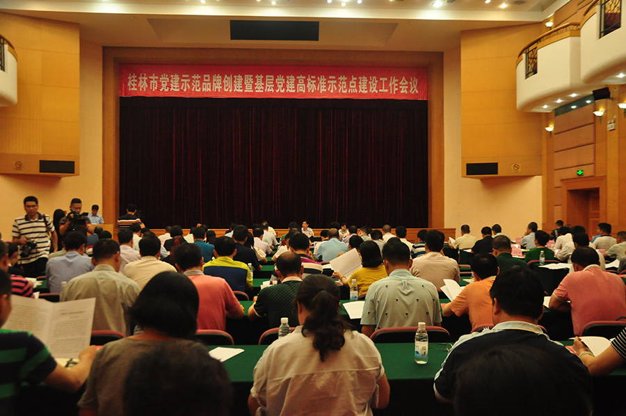 圖為桂林市黨建示范品牌創(chuàng)建暨基層黨建高標準示范點建設工作會議現(xiàn)場