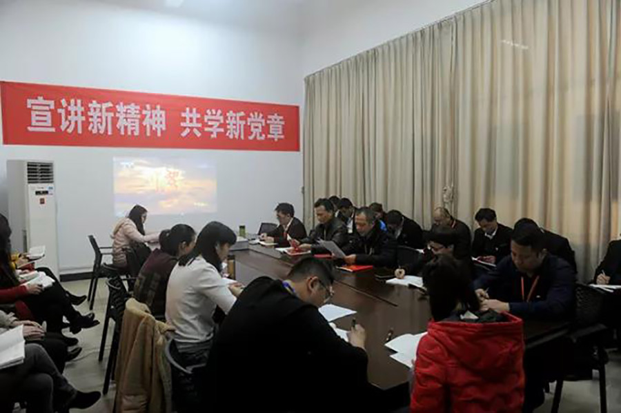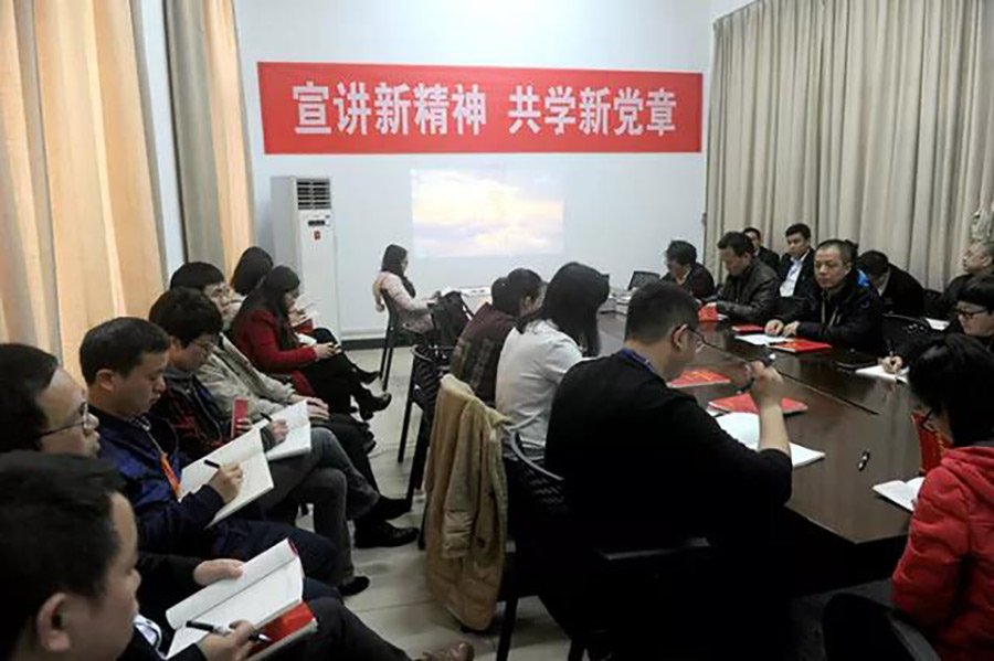 2018年2月28日上午,根據(jù)中共桂林市臨桂新區(qū)工作委員會(huì)關(guān)于學(xué)習(xí)貫徹十九大精神學(xué)習(xí)培訓(xùn)工作方案的安排,新城投資集團(tuán)黨支部組織全體黨員、入黨積極分子對(duì)新《黨章》進(jìn)行宣講學(xué)習(xí)。新城投資集團(tuán)黨支部書記周道林做《宣講新精神 共學(xué)新黨章》主題宣講,對(duì)集團(tuán)公司貫徹落實(shí)黨的十九大精神,學(xué)習(xí)領(lǐng)會(huì)新《黨章》規(guī)定,把新《黨章》規(guī)定落實(shí)到各項(xiàng)工作中等方面工作做出安排。