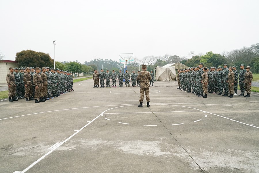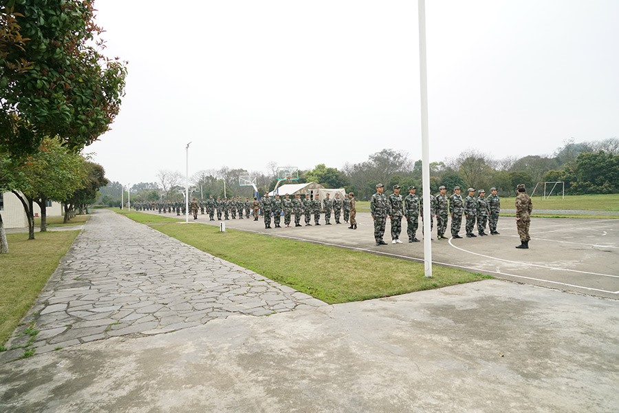 全體人員換上迷彩服操場(chǎng)集隊(duì)