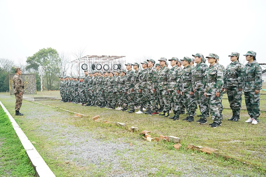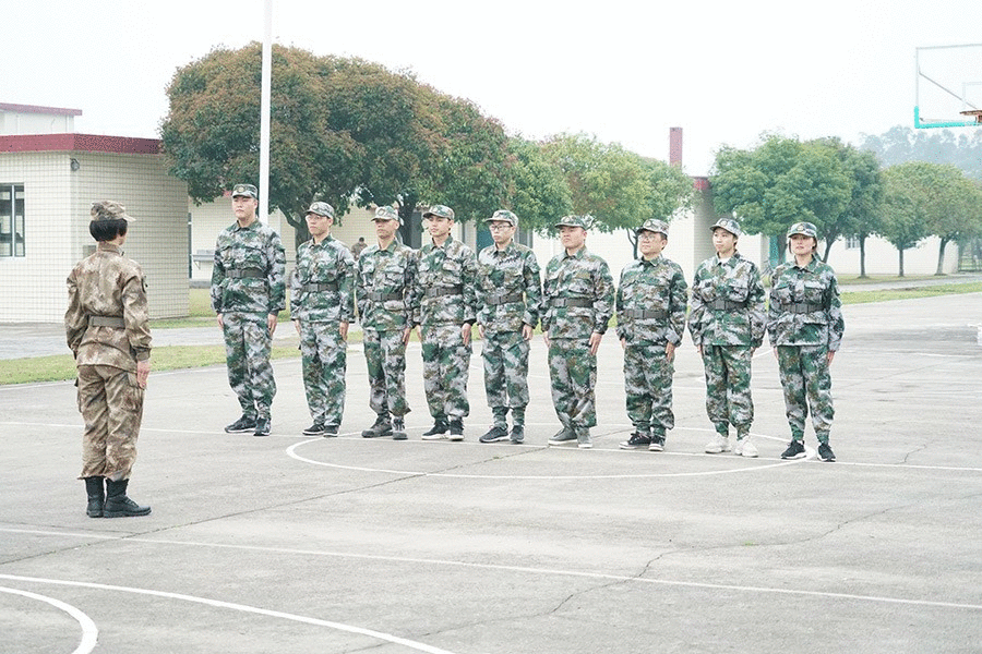 抵達(dá)訓(xùn)練場(chǎng)地后,全體人員換上迷彩服,拉開了一天封閉軍訓(xùn)的序幕。