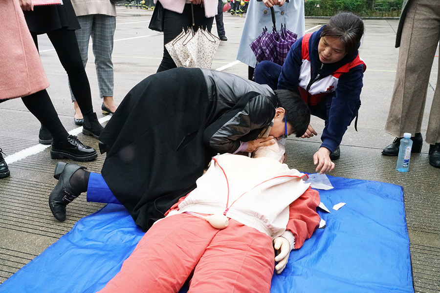 老師授課詼諧幽默,與大家頻頻互動,通過理論與實際操作相結合,運用假人等專業(yè)器具進行教學,讓參訓人員迅速掌握了心肺復蘇等應急措施和方法。