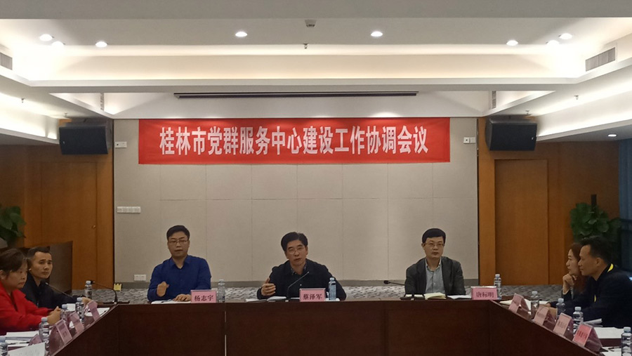2019年5月9日,市委組織部常務(wù)副部長(zhǎng)、市黨群服務(wù)中心建設(shè)工作領(lǐng)導(dǎo)小組副組長(zhǎng)蔡澤軍在新城投資集團(tuán)1001會(huì)議室主持召開桂林市黨群服務(wù)中心建設(shè)協(xié)調(diào)會(huì)議。臨桂新區(qū)工委副書記、管委會(huì)副主任、市黨群服務(wù)中心建設(shè)工作領(lǐng)導(dǎo)小組副組長(zhǎng)唐標(biāo)明出席會(huì)議。