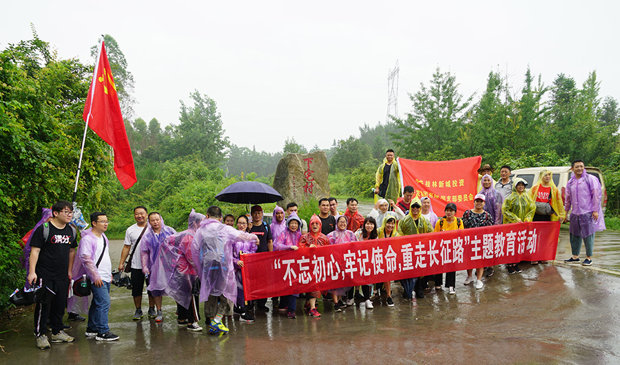 在中國共產(chǎn)黨建黨98周年之際,為進(jìn)一步提升支部黨員的黨性修養(yǎng),緬懷革命先輩,牢記革命歷史,繼承和弘揚(yáng)偉大的長征精神,6月27日,新城投資集團(tuán)黨支部全體黨員組織了“不忘初心,牢記使命,重走長征路”主題黨日活動(dòng),來到全州縣紹水鎮(zhèn)沿著紅軍當(dāng)年的足跡,追憶紅軍的光輝歲月,學(xué)習(xí)紅軍精神,開展重走長征路活動(dòng)。臨桂新區(qū)工委委員、管委會副主任文杰,市紀(jì)委駐臨桂新區(qū)紀(jì)檢組副組長唐良平,新城投資集團(tuán)黨支部書記、總經(jīng)理周道林以普通黨員身份參加活動(dòng)。