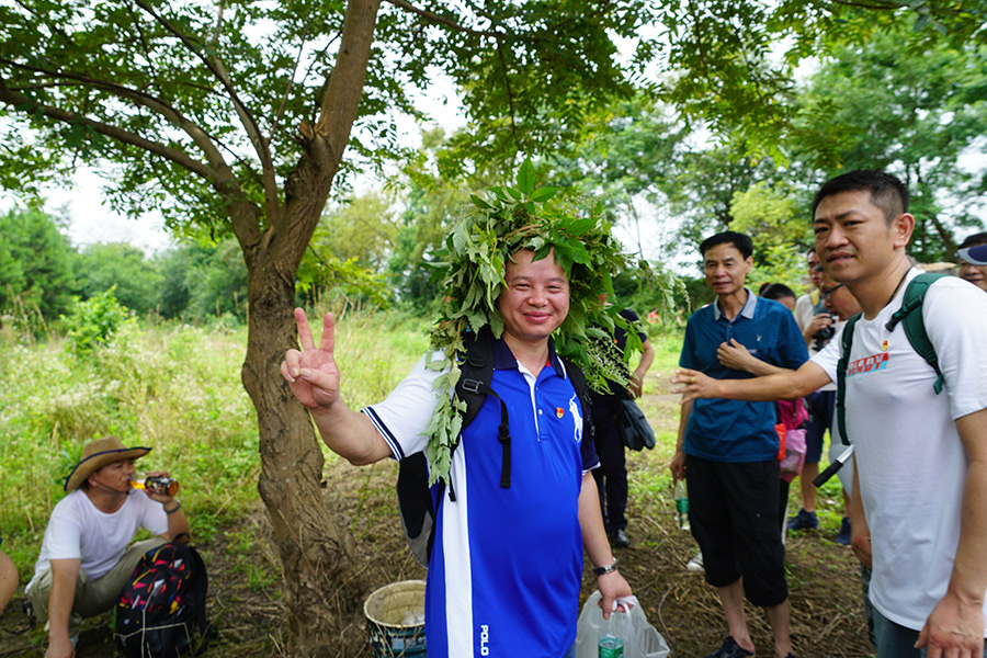 烈日炎炎,隊(duì)伍沿著溪流行進(jìn),來到一片荊棘林,按導(dǎo)航的方向,前方已經(jīng)沒有了路,同志們紛紛拾起樹枝,開辟著道路緩慢前行,經(jīng)歷了一個(gè)多小時(shí)的摸索,隊(duì)伍終于找到了正確的方向。中午16點(diǎn),同志們途經(jīng)王家、棕樹園,抵達(dá)了麻市。