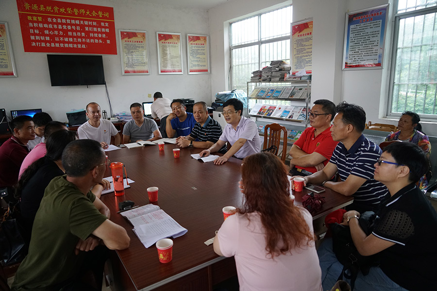 慰問(wèn)組在村委辦公室與資源縣組織部分管領(lǐng)導(dǎo)、兩水鄉(xiāng)鎮(zhèn)分管領(lǐng)導(dǎo)、煙竹村支書(shū)、村主任、市農(nóng)業(yè)局分管扶貧領(lǐng)導(dǎo)、派駐第一書(shū)記、派駐隊(duì)員見(jiàn)面并進(jìn)行座談,調(diào)研了解村組脫貧攻堅(jiān)任務(wù)和情況。唐標(biāo)明詳細(xì)詢(xún)問(wèn)了駐村工作隊(duì)員近期的工作、生活情況,并與大家共同探討、謀劃2019年產(chǎn)業(yè)脫貧工作的各項(xiàng)目標(biāo)和任務(wù)。唐標(biāo)明對(duì)兩名駐村隊(duì)員的工作給了充分的肯定,同時(shí)對(duì)下一步工作提出了三方面的要求:一是要團(tuán)結(jié),積極融入村兩委班子,服從村級(jí)管理,在工作上要維護(hù)村黨支部書(shū)記的統(tǒng)一領(lǐng)導(dǎo);二是多為村脫貧攻堅(jiān)想辦法、出思路,打好年度脫貧攻堅(jiān)戰(zhàn);三是統(tǒng)籌利用自身優(yōu)勢(shì),多為村級(jí)爭(zhēng)取扶貧項(xiàng)目。