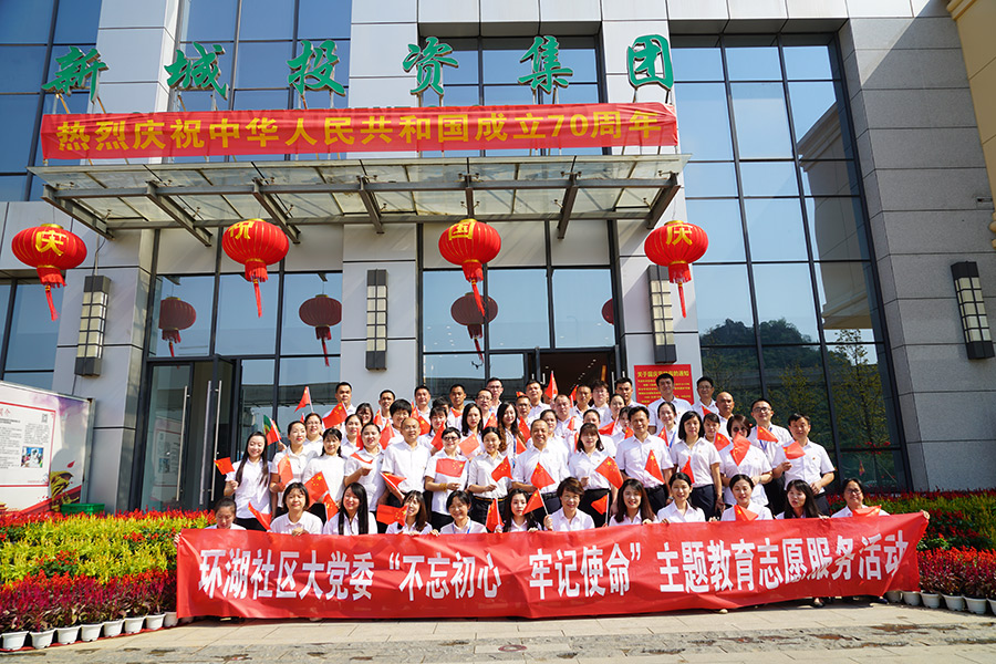 新城投資集團黨總支、環(huán)湖社區(qū)黨支部慶祝新中國成立70周年合影