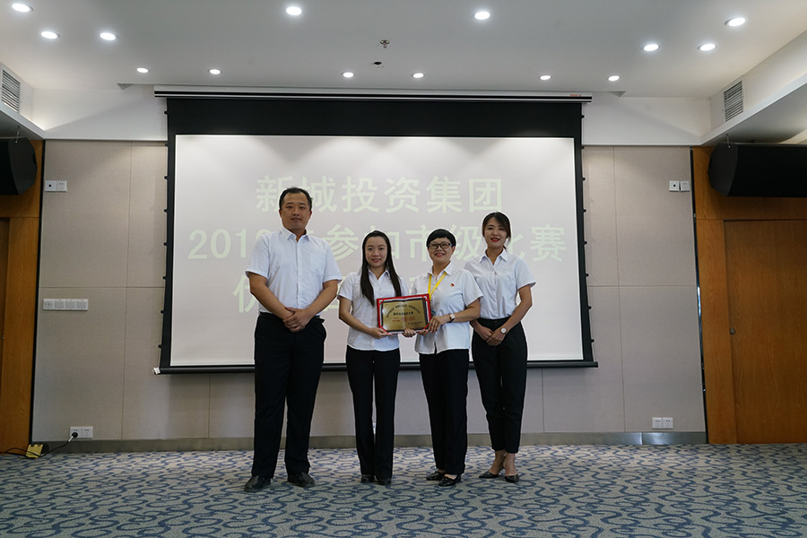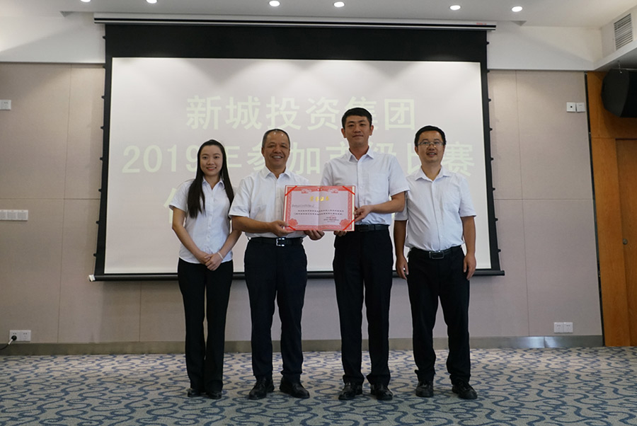 當天下午,新城投資集團召開了專題表彰會,通報表揚了2019年集團公司參加市、區(qū)級比賽獲得佳績的團隊。會議由鄧仁友主持,周道林在表彰致辭中表示,集團公司黨總支高度重視企業(yè)文化建設(shè)工作,2019年精心組織團隊積極參加各級部門組織的文藝、文體比賽,參賽隊員利用業(yè)余時間,加班加點的組織排練,展現(xiàn)了新城投資集團真抓實干、開拓進取、團結(jié)奉獻的精神風貌,希望同志們繼續(xù)努力、擼起袖子加油干,為集團公司的全面發(fā)展積極勤奮工作,向新中國成立70周年獻禮。