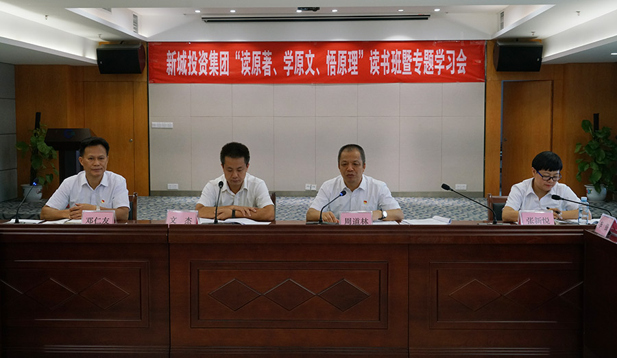 10月8日至10月10日,新城投資集團舉辦黨員領導班子 “讀原著、學原文、悟原理”讀書班暨專題學習會,新區(qū)工委委員、管委會副主任文杰出席并做重點發(fā)言,集團黨總支籌備工作領導小組組長、主題教育領導小組組長、董事長周道林作開班動員講話,新區(qū)工委主題教育巡回指導組成員李鋒、謝琨到會指導。集團黨總支籌備工作領導小組副組長、主題教育領導小組副組長、副總經(jīng)理鄧仁友主持學習會。學習會以原原本本學原著為主,每位領導班子成員輪流領學。