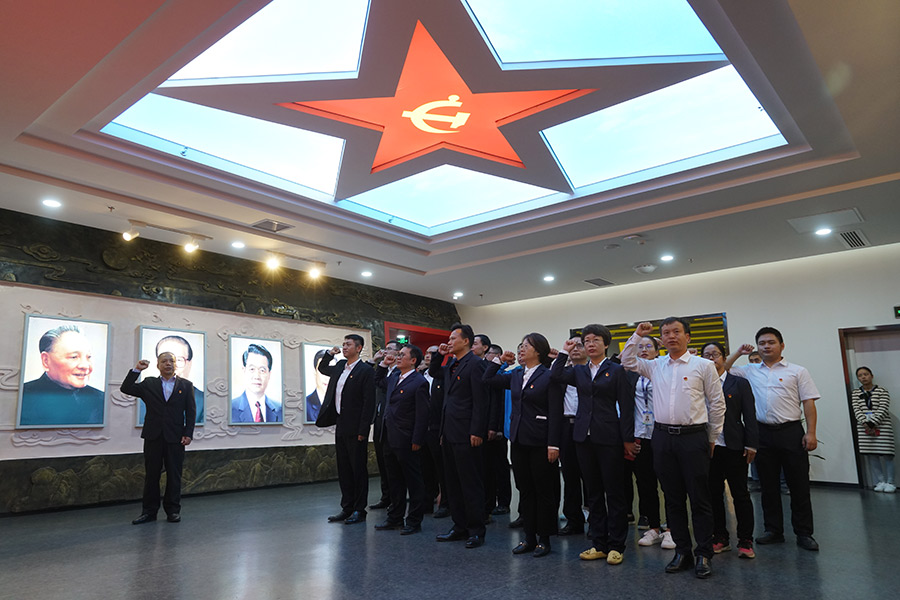 活動(dòng)當(dāng)天,大家參觀了位于新城投資集團(tuán)辦公大樓一、二樓的桂林市黨群服務(wù)中心。講解員為黨員們一一講解了中心的定位、功能及各展區(qū)的內(nèi)容,黨員們認(rèn)真聆聽講解員的講解,依次參觀了桂林市黨員志愿者服務(wù)總站、黨群業(yè)務(wù)受理區(qū)和黨組織活動(dòng)區(qū)等展廳。體驗(yàn)了“健康小屋”“城市書吧”“i游桂林”“時(shí)光隧道”“微笑墻”“非遺文化屋”“紅色影院”“電子翻書”等功能設(shè)施。通過觀看3D幻影成像《湘江戰(zhàn)役》和微電影《廖俊波》,真切感受了先輩們踐行初心拋頭顱、灑熱血的壯舉及廖俊波同志對(duì)黨忠誠、無私奉獻(xiàn)的高尚品質(zhì)。在以湘江戰(zhàn)役為歷史背景而制作的雕塑前,全體黨員合唱《國際歌》《中華人民共和國國歌》,重溫入黨誓詞。