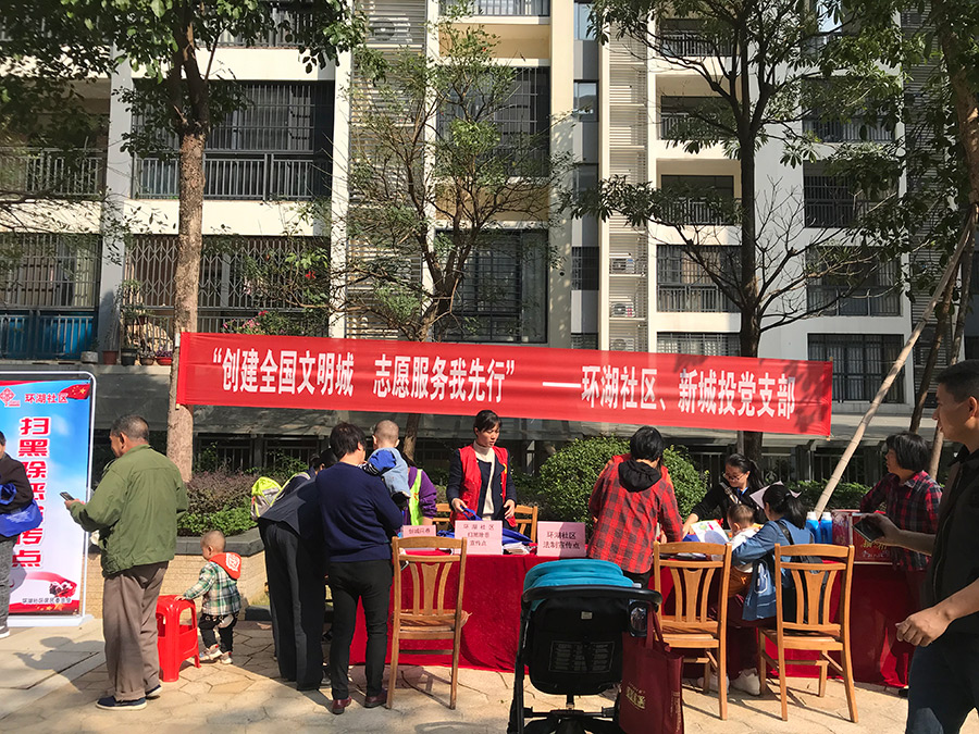 為深入推動我市創(chuàng)建全國文明城市扎實有效開展,貫徹落實黨中央、自治區(qū)黨委,市委和工委關(guān)于“不忘初心、牢記使命”主題教育工作部署,高標準高質(zhì)量落實主題教育基本要求,根據(jù)新城投資集團《關(guān)于“不忘初心、牢記使命”主題教育學習工作方案》具體安排,11月7日,新城投資集團黨支部聯(lián)合環(huán)湖社區(qū)、宏謀物業(yè)在國惠村南門開展“創(chuàng)建全國文明城,志愿服務(wù)我先行”活動。
