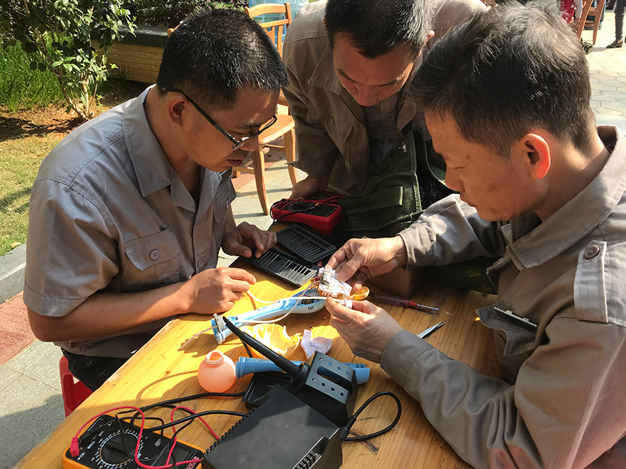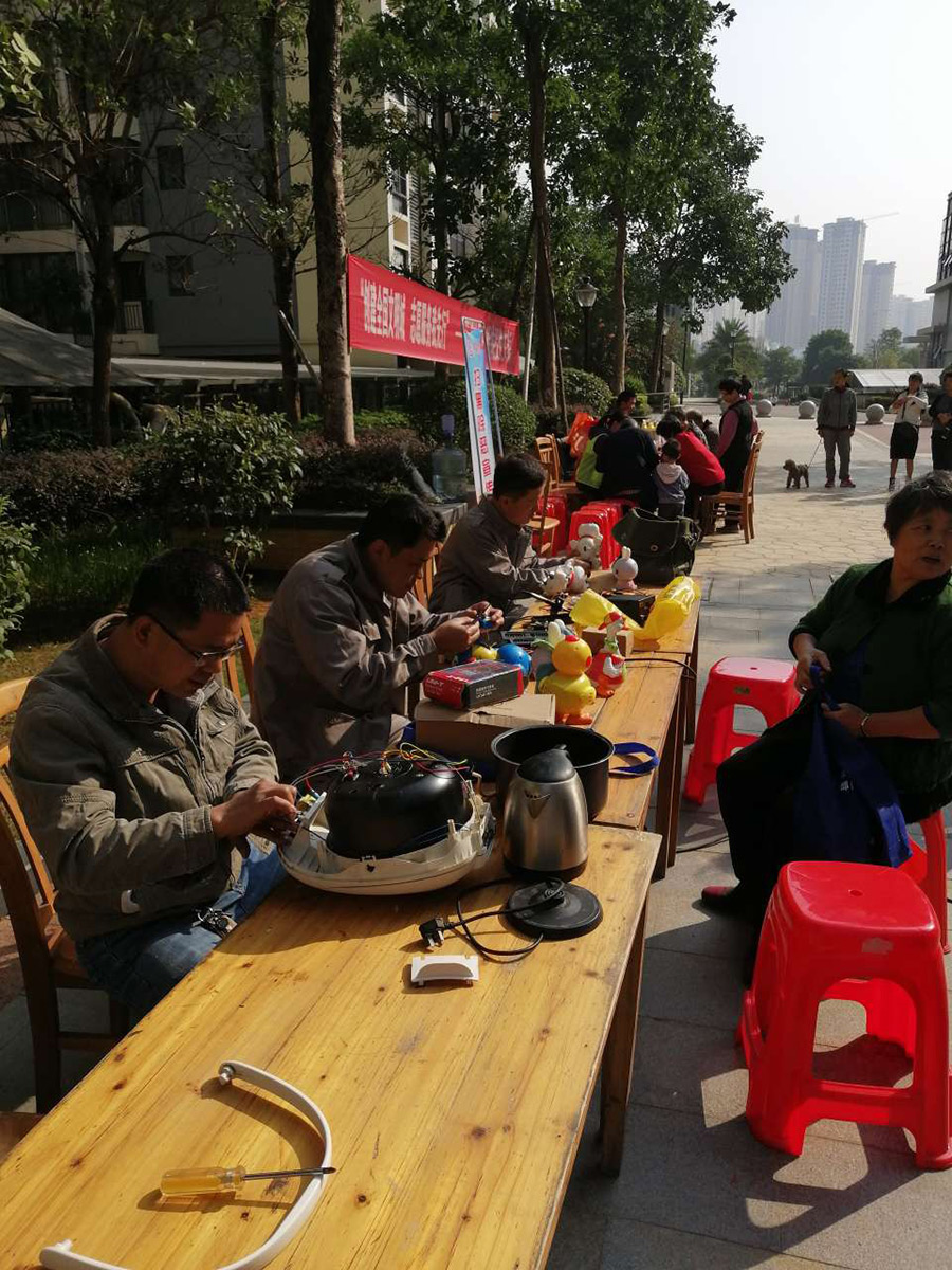 新城投資集團黨員志愿者們在現(xiàn)場開展“便民服務(wù)進社區(qū)”活動,對居民送來的家電進行故障診斷和免費維修,各種飲水機、豆?jié){機、電飯煲、電水壺等小家電在志愿者手中紛紛運轉(zhuǎn)起來,志愿者們認真負責的態(tài)度和專業(yè)的維修技能獲得了居民們的一致好評。