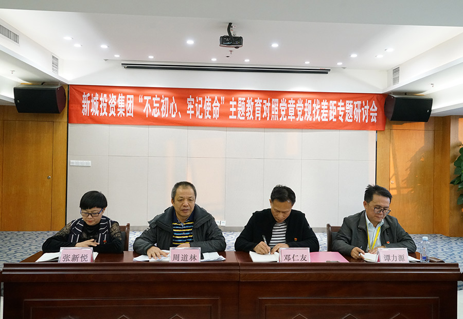 11月11日,新城投資集團(tuán)黨支部召開“不忘初心、牢記使命”主題教育暨對(duì)照黨章黨規(guī)找差距專題研討會(huì)。集團(tuán)黨支部書記、董事長(zhǎng)周道林主持會(huì)議。