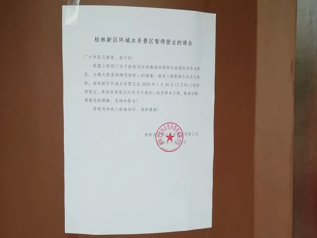 根據(jù)上級部門關(guān)于新型冠狀病毒感染的肺炎疫情防控有關(guān)要求,落實并發(fā)布景區(qū)暫停營業(yè)通告。