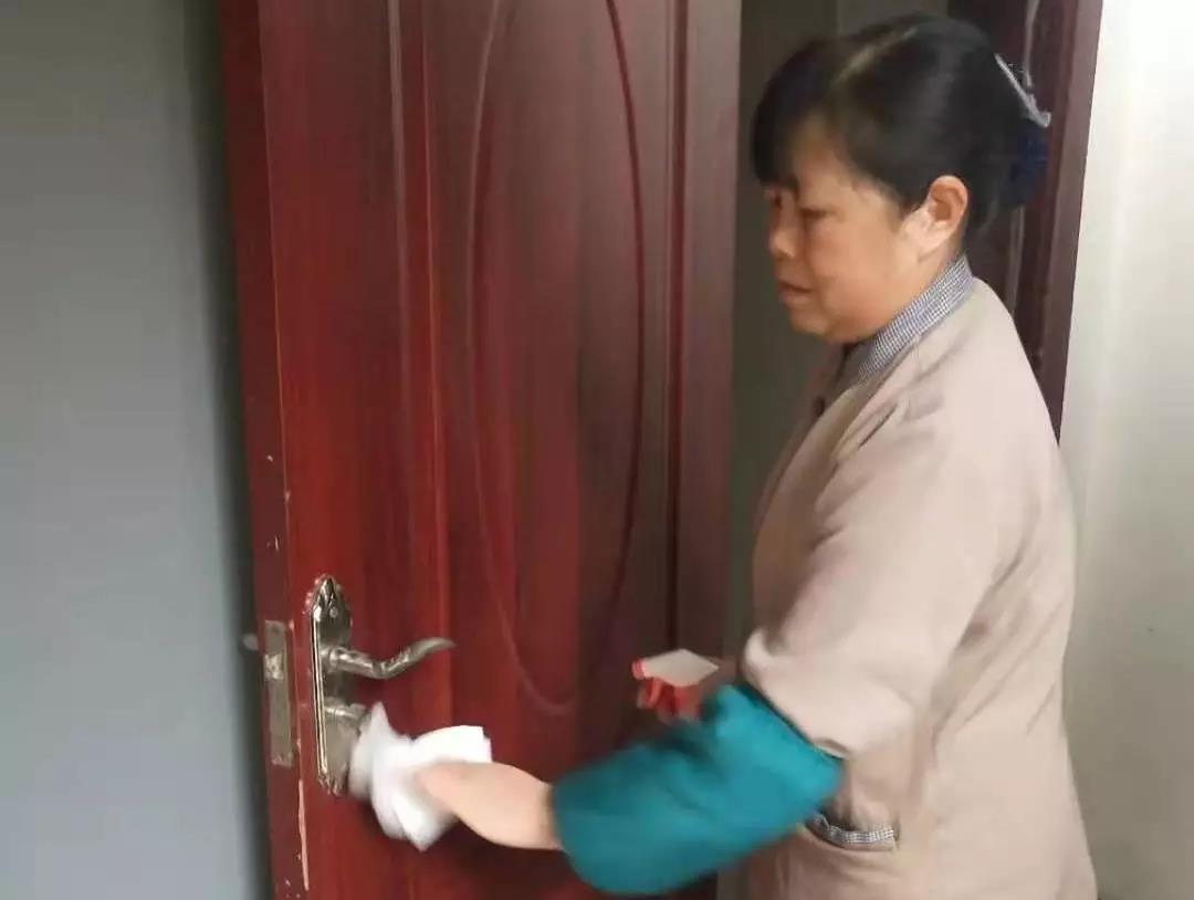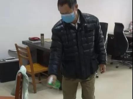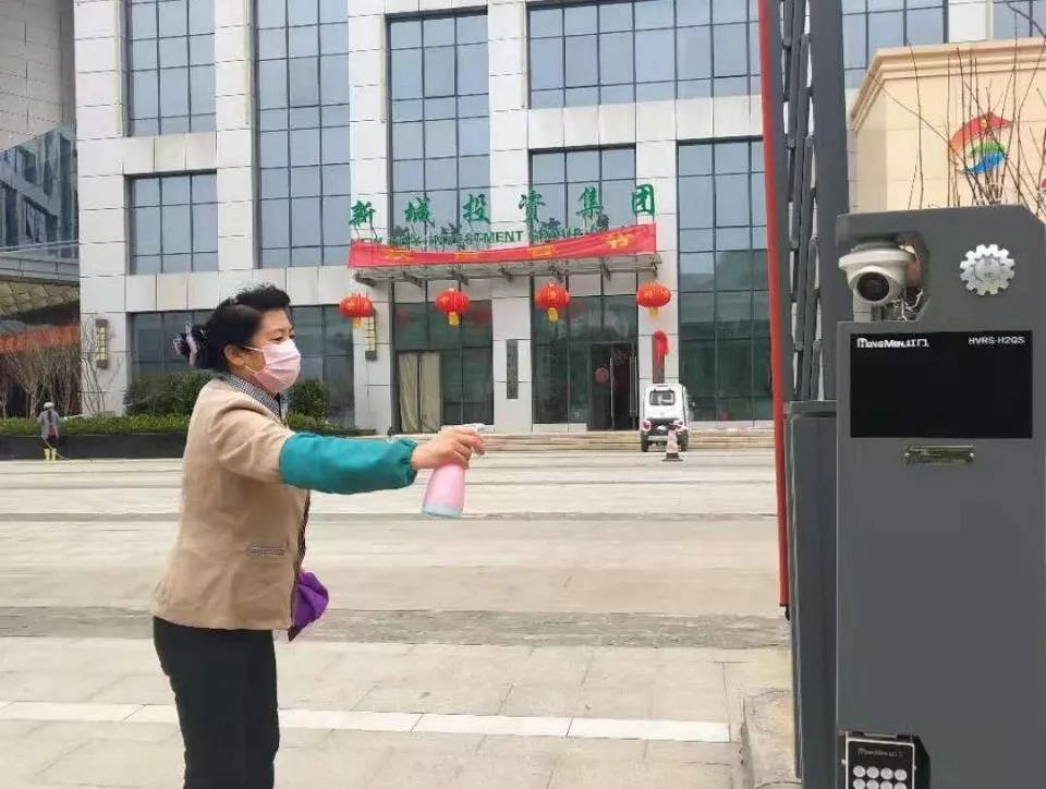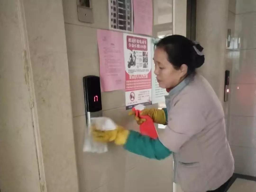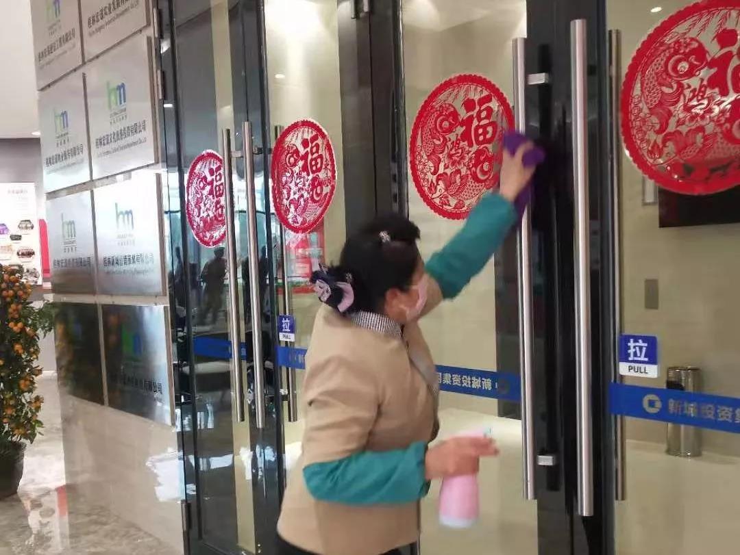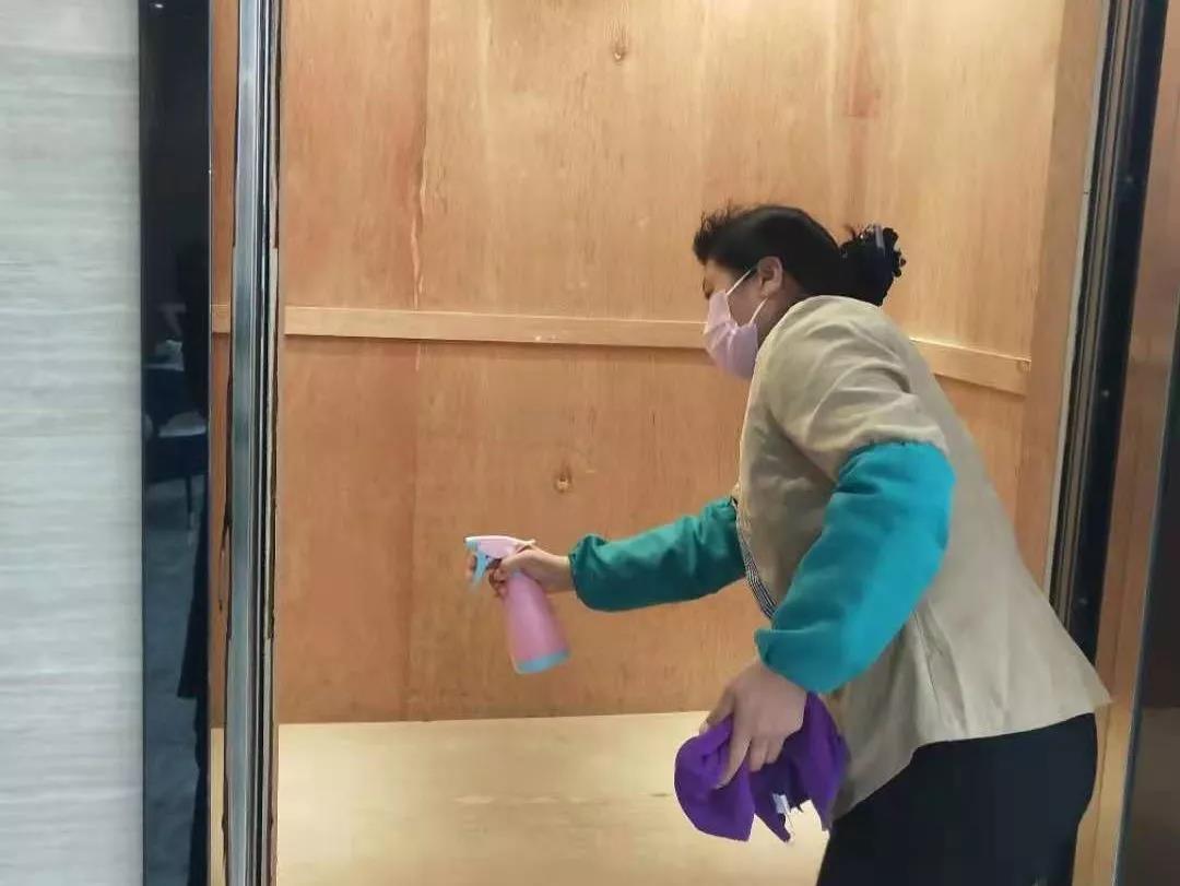 ▲新城投資集團辦公樓項目對出入門廳、電梯、門把手、茶水間等位置進行重點消毒。