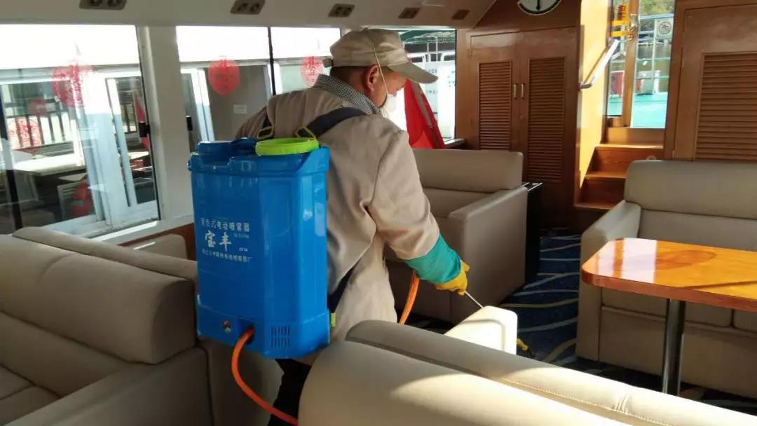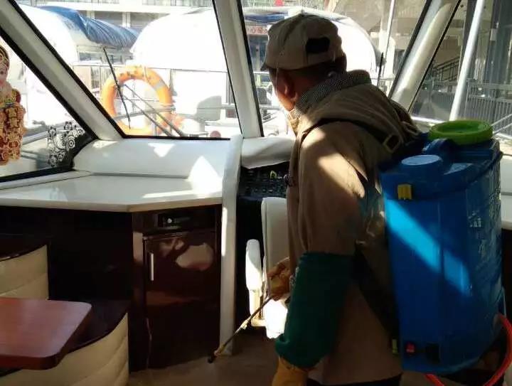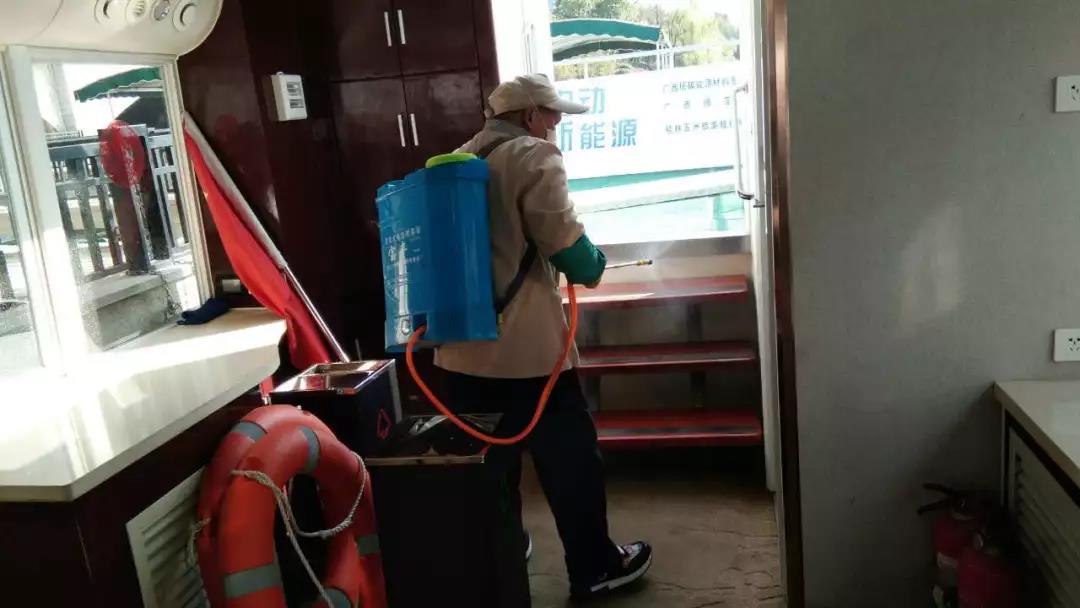 ▲游船項目對碼頭、游船內部進行消毒。