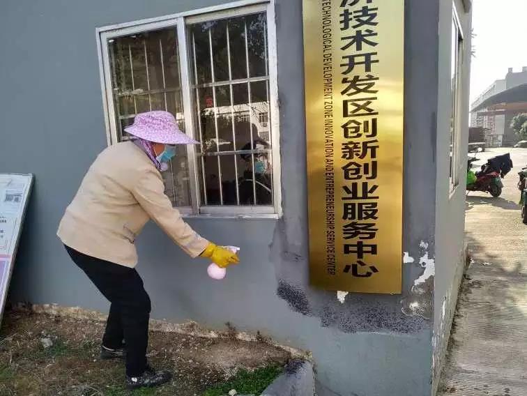 ▲秧塘工業(yè)園項目對大門、崗亭、垃圾桶等區(qū)位進行消毒。護衛(wèi)隊員也戴上了醫(yī)用口罩。