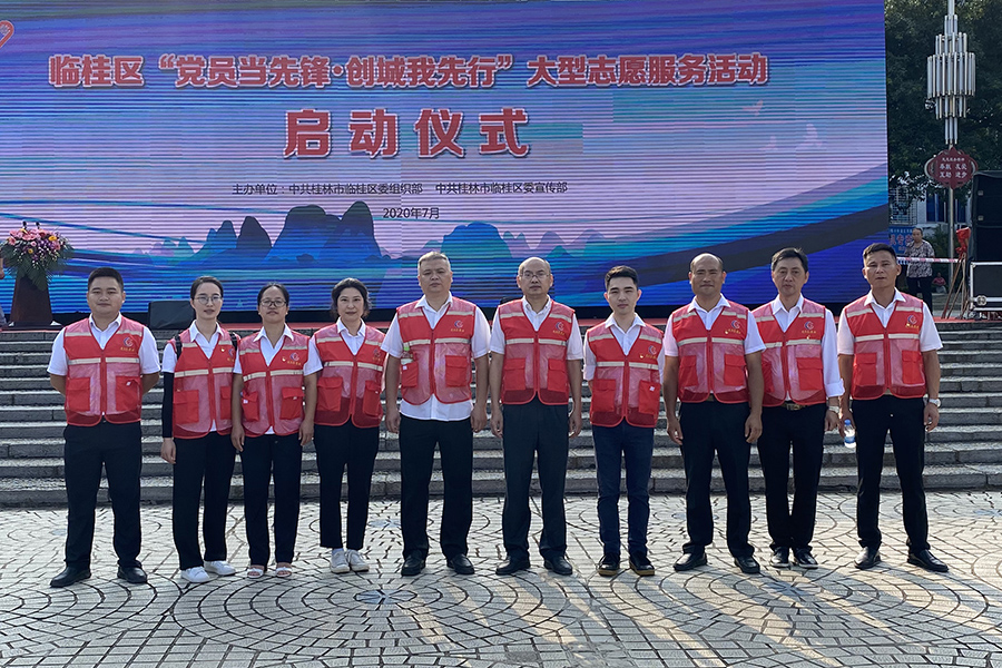 7月14日,新城投資集團(tuán)黨總支組織第一支部、第二支部黨員志愿者趙建斌、粟大鳴、蒙妙云、謝籍浩、袁靜、唐緣蒙、徐新輝、侯麗麗、鄧映洲、龍海東十位同志參加了由臨桂區(qū)委組織部、宣傳部在臨桂區(qū)金山廣場(chǎng)主辦的“黨員當(dāng)先鋒,創(chuàng)城我先行”大型志愿服務(wù)活動(dòng)啟動(dòng)儀式。區(qū)委副書(shū)記王鳳玲現(xiàn)場(chǎng)致辭,拉開(kāi)了志愿服務(wù)活動(dòng)啟動(dòng)儀式帷幕,為桂林市創(chuàng)建全國(guó)文明城市助力。