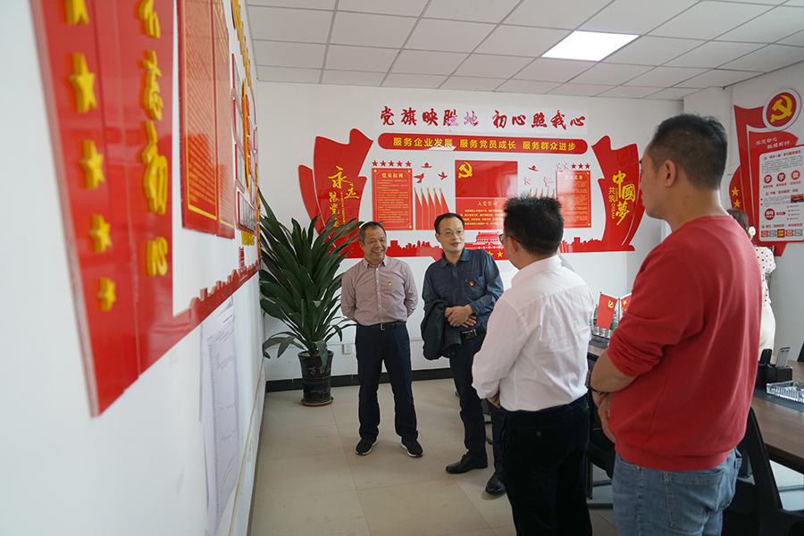 蔣玖明一行來到黨員活動室,察看了項目黨建制度、黨建活動、施工建設及安全防疫等方面資料上墻情況,了解了“11321工作法”實效,黨員在聯(lián)建黨組織的帶領下充分發(fā)揮示范帶頭作用、促進項目建設的情況。蔣玖明強調(diào),聯(lián)合黨支部要積極探索黨建項目化管理模式,建議新區(qū)在項目招投標中增加黨建分值一項,充分體現(xiàn)新區(qū)對黨建引領項目建設的關注,把黨支部擺在一線,讓黨員走在前列,有效促進黨建工作與建設工作的全面嵌入、同頻共振、相互促進。另一方面,我們要緊扣臨桂新區(qū)黨建品牌 “黨旗映勝地、初心照我心”這個主旨,深入挖掘那些能較好發(fā)揮“三個勇于”紅軍長征精神的基層黨員典型,凸顯黨員在項目一線、服務一線的先鋒模范作用,進一步弘揚主旋律、凝聚正能量,講好黨員的故事,營造品牌創(chuàng)建的濃厚氛圍。