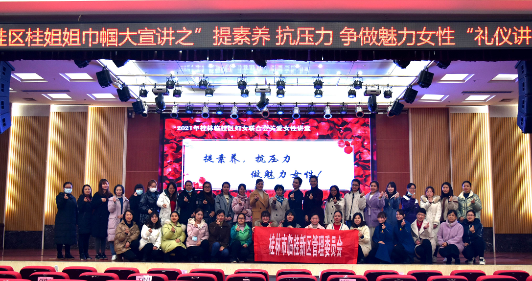 3月4日,公司女職工踴躍報名,與新區(qū)管委會女職工代表一起參加了臨桂區(qū)婦聯(lián)舉辦的“提素養(yǎng) 抗壓力 爭做魅力女性”禮儀講座。授課老師劉虹希女士通過講解和現(xiàn)場演示等方式,對接待禮儀、會議禮儀、服務(wù)禮儀及行車禮儀進(jìn)行了現(xiàn)場演示。通過培訓(xùn),加深了女職工對儀態(tài)禮儀重要性認(rèn)識,提升了女職工的抗壓能力和綜合素養(yǎng),展現(xiàn)了新區(qū)女職工積極向上的精神風(fēng)貌。
