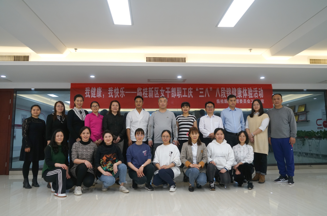 3月19日,在公司辦公大樓職工之家,工會組織職工積極報名參加了臨桂新區(qū)管委工會舉辦的“我健康,我快樂”八段錦健康體驗(yàn)活動。在老師耐心地講解之下,大家領(lǐng)略到八段錦傳統(tǒng)文化精髓的獨(dú)特魅力。通過此次體驗(yàn)活動,職工們了解了“八段錦”的健身、養(yǎng)生功用,表示今后要增強(qiáng)健身意識,工作之余抽出時間堅(jiān)持練習(xí),在健身中尋求快樂,在工作中收獲幸福。