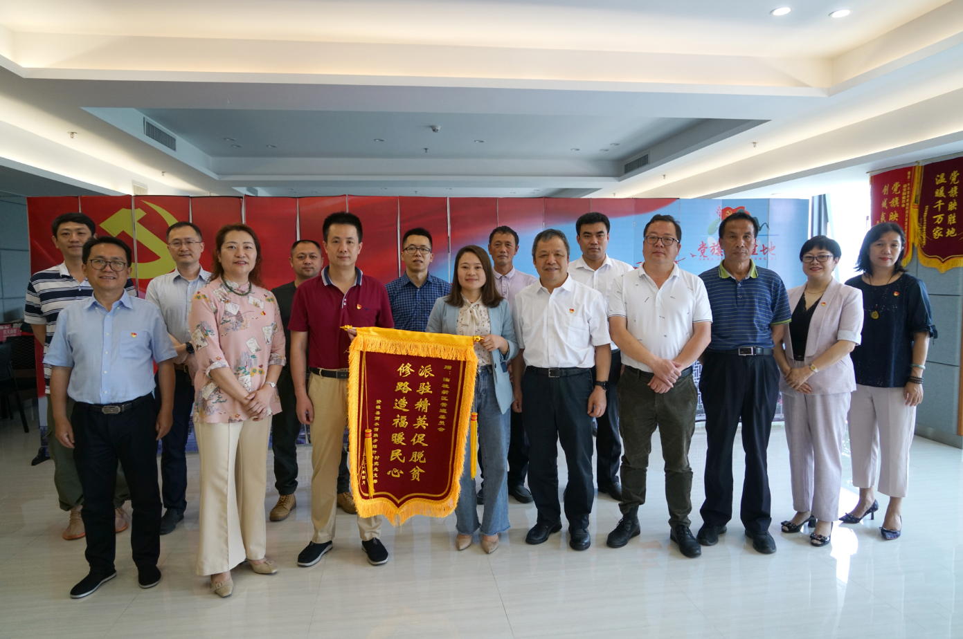 5月11日,資源縣兩水苗族鄉(xiāng)副鄉(xiāng)長(zhǎng)曾祥超,煙竹村黨總支書(shū)記、村委主任龍小玉等一行將“修路造福暖民心,派駐精英促脫貧”的錦旗送到桂林新城投資集團(tuán)辦公大樓,對(duì)駐村隊(duì)員及后盾單位兩年來(lái)對(duì)煙竹村的幫扶工作表示感謝。臨桂新區(qū)工委委員、管委會(huì)副主任、新區(qū)機(jī)關(guān)黨委副書(shū)記文杰,新區(qū)工委組織人事部部長(zhǎng)梁利,新城投資集團(tuán)黨總支書(shū)記、董事長(zhǎng)、總經(jīng)理周道林出席贈(zèng)錦旗活動(dòng)。