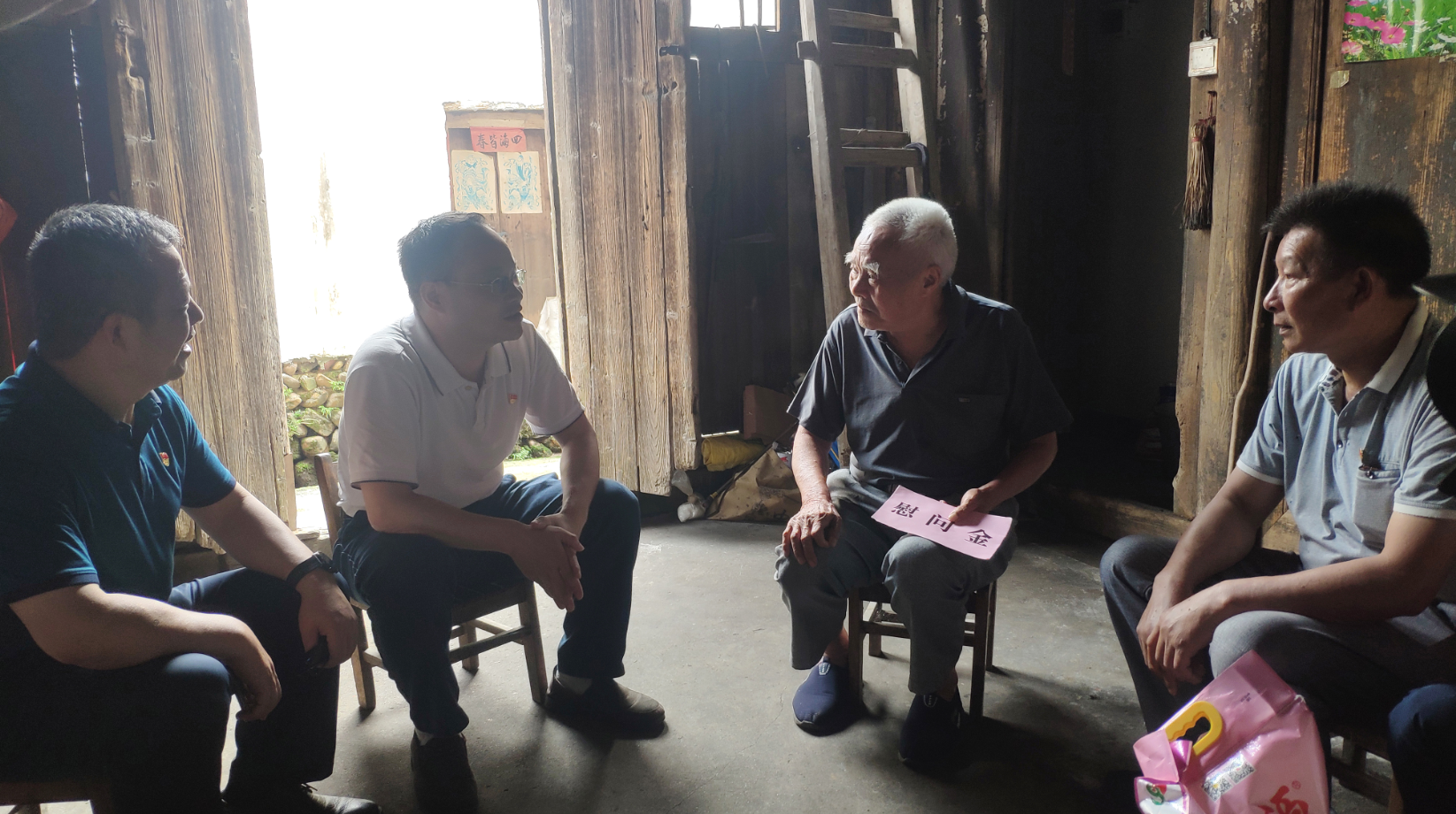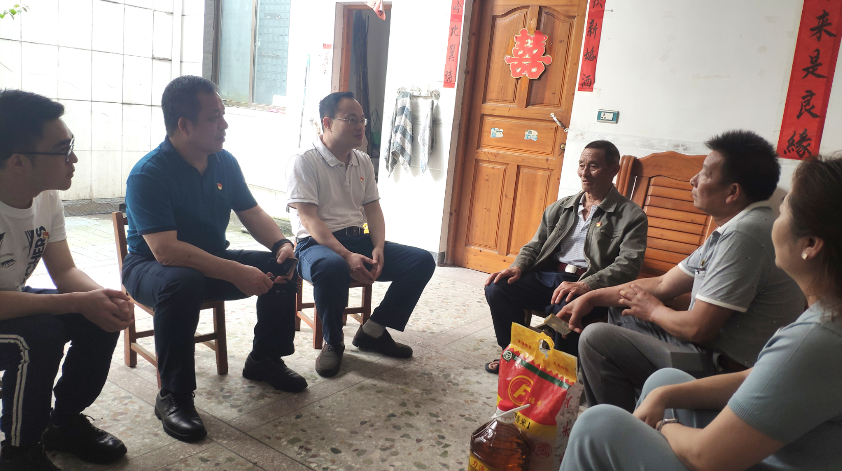 慰問(wèn)組一行走訪慰問(wèn)了兩位55年黨齡的困難老黨員林德貴和李天發(fā),并送上油米等慰問(wèn)品。