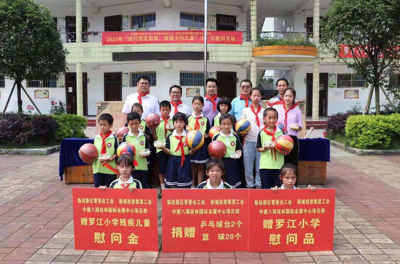 為認(rèn)真貫徹落實(shí)黨史學(xué)習(xí)教育我為群眾辦實(shí)事要求,臨桂新區(qū)管委會(huì)工會(huì)、新城投資集團(tuán)工會(huì)在臨桂區(qū)五通鎮(zhèn)羅江希望小學(xué)開(kāi)展“踐行黨史教育,情暖鄉(xiāng)村兒童”六一節(jié)前夕慰問(wèn)活動(dòng),并給孩子們帶來(lái)乒乓球臺(tái)、籃球、書(shū)包、文具、食品等物品,給小朋友們送上節(jié)日祝福。