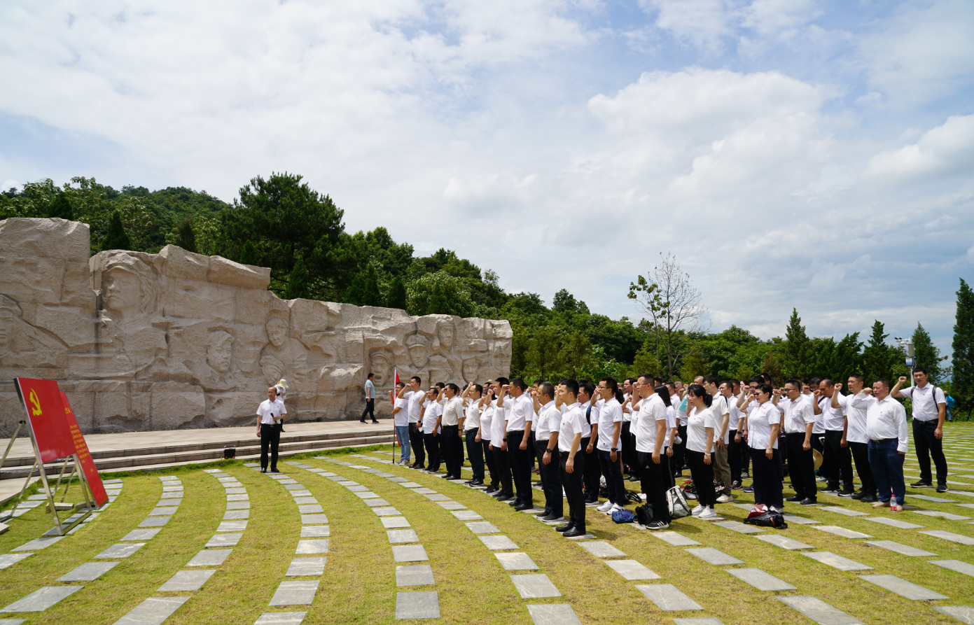 “一山一石一忠魂,一草一木一豐碑”。在紅軍長征湘江戰(zhàn)役紀(jì)念園憑吊廣場,“紅軍魂”雕塑巍然聳立,全體黨員向在湘江戰(zhàn)役中英勇犧牲的紅軍烈士默哀,敬獻(xiàn)花籃并三鞠躬,表達(dá)對革命烈士的深切緬懷和無限敬仰。面對鮮艷的中國共產(chǎn)黨黨旗,大家莊嚴(yán)列隊,重溫入黨誓詞,用錚錚誓言表達(dá)矢志不渝守初心、奮發(fā)有為擔(dān)使命的堅定信念。