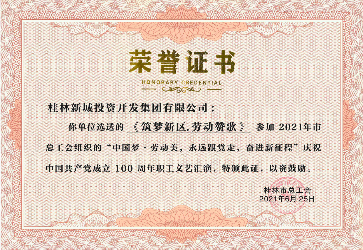2021年6月25日,由桂林市總工會(huì)主辦的 “中國夢(mèng)勞動(dòng)美——永遠(yuǎn)跟黨走,奮進(jìn)新征程”慶祝中國共產(chǎn)黨成立100周年全市職工文藝匯演在桂林春天劇院隆重舉行。市委副書記趙仲華,市人大副主任、市總工會(huì)主席徐鋒,副市長龍杏華,市政協(xié)副主席蔣昌桂,市總工會(huì)黨組書記、常務(wù)副主席、機(jī)關(guān)黨委書記寧志出席活動(dòng)。新城投資集團(tuán)黨總支書記、董事長、總經(jīng)理周道林作為受邀嘉賓參加活動(dòng)。