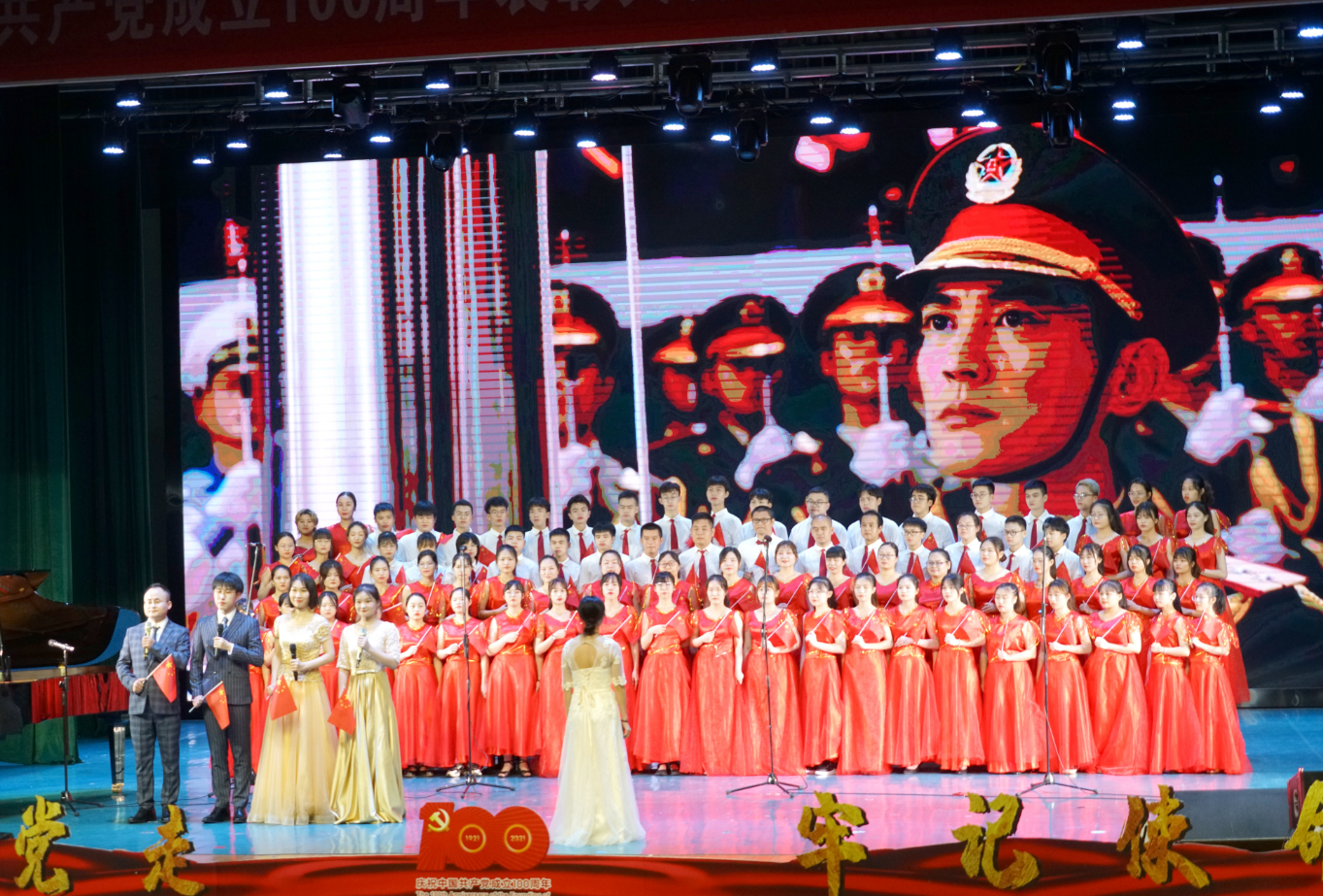 歌詠比賽現(xiàn)場,學校師生用熱情飽滿的姿態(tài)傳唱紅色經(jīng)典,獻禮百年華誕,用歌聲抒發(fā)對黨和祖國的熱愛,表達心中的向往和美好的祝愿。最后,領導嘉賓與學校師生合唱《沒有共產(chǎn)黨就沒有新中國》,氣勢磅礴的歌聲,激昂全場。