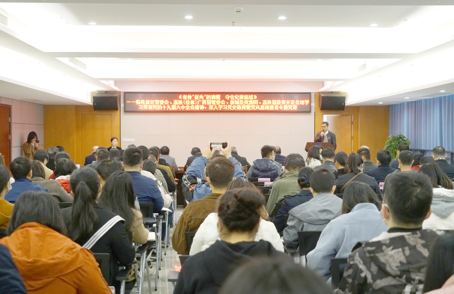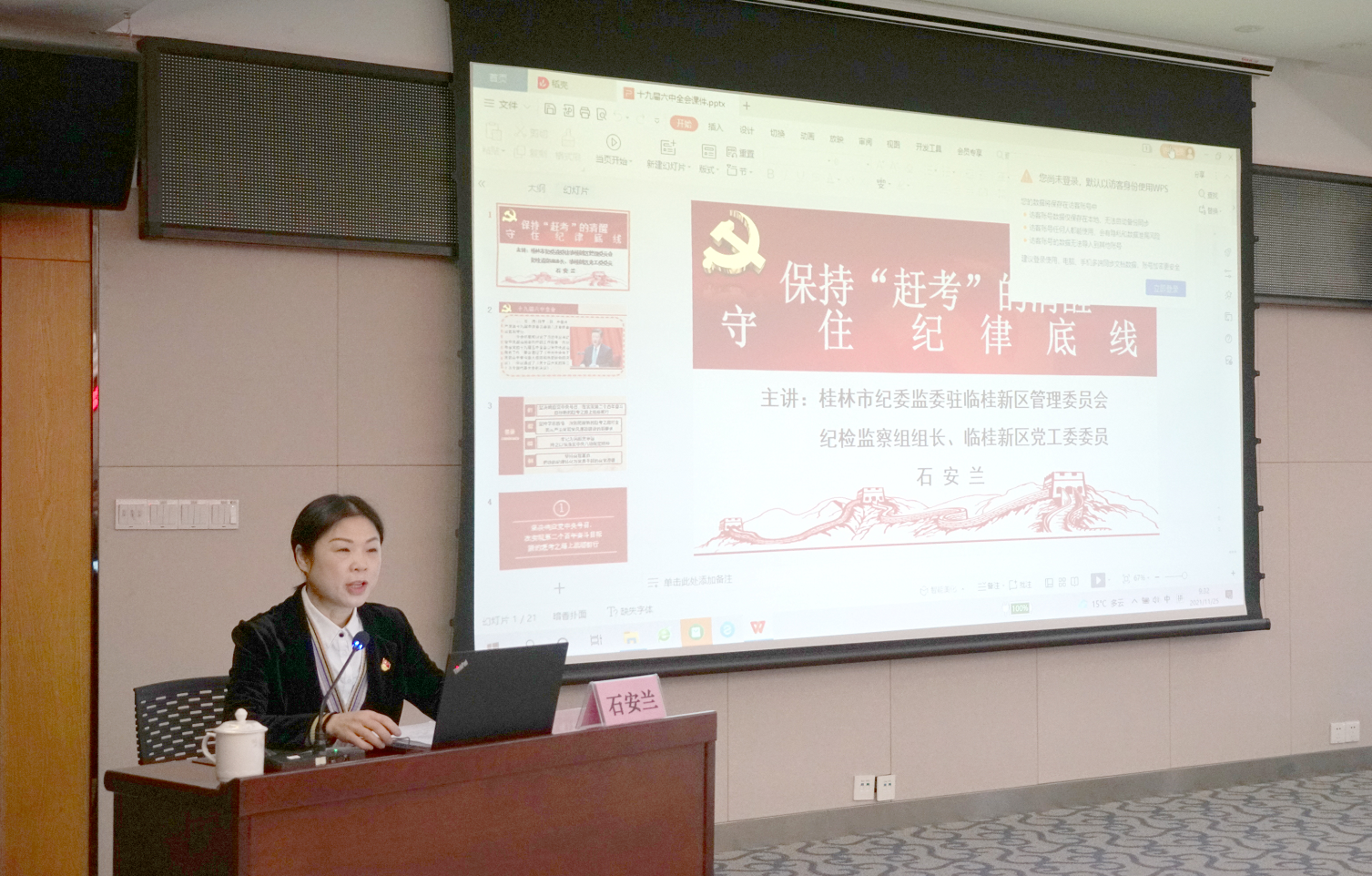 為深入貫徹落實(shí)全面從嚴(yán)治黨要求,進(jìn)一步推進(jìn)黨風(fēng)廉政建設(shè)和反腐敗工作深入開(kāi)展,增強(qiáng)黨員干部廉潔自律意識(shí)和拒腐防變能力,11月25日,市紀(jì)委監(jiān)察委駐臨桂新區(qū)管委會(huì)紀(jì)檢監(jiān)察組組長(zhǎng)、臨桂新區(qū)黨工委委員石安蘭在新城投資集團(tuán)十樓會(huì)議室開(kāi)展綜合監(jiān)督單位集體廉政談話暨《保持“趕考”的清醒 守住紀(jì)律底線》專題黨課。市紀(jì)委監(jiān)察委駐臨桂新區(qū)管委會(huì)紀(jì)檢監(jiān)察組副組長(zhǎng)唐良平主持專題黨課。臨桂新區(qū)管委會(huì)、高鐵(桂林)廣西園管委會(huì)、新城投資集團(tuán)、高鐵園投資公司等4家單位120多名黨員干部聆聽(tīng)了黨課。