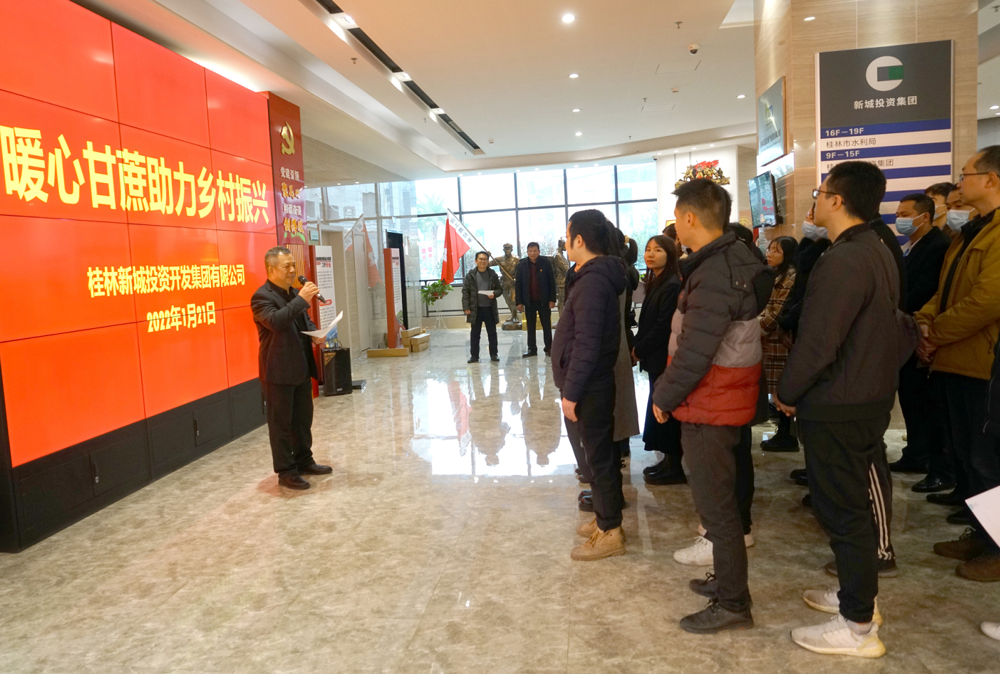 2022年1月21日,新城投資集團(tuán)組織開展了“暖心甘蔗助力鄉(xiāng)村振興”活動。集團(tuán)黨總支書記、董事長周道林,五通鎮(zhèn)羅江村黨總支部書記林次生參加活動?;顒佑杉瘓F(tuán)黨總支委員、工會主席譚力源主持。