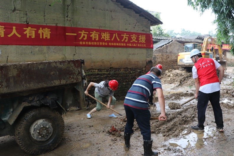 近期,臨桂新區(qū)鄉(xiāng)村振興聯(lián)系點(diǎn)五通鎮(zhèn)羅江村連續(xù)遭遇多輪強(qiáng)降雨侵襲,鄉(xiāng)村路面房屋受災(zāi)嚴(yán)重,村落存在大量積水和淤泥。面對(duì)災(zāi)情,臨桂新區(qū)黨工委委員、管委會(huì)常務(wù)副主任李星明,新區(qū)黨工委委員、管委會(huì)副主任、機(jī)關(guān)黨委書(shū)記蔣玖明了解情況后,急群眾所急、想群眾所想,立即把這項(xiàng)艱巨任務(wù)交給了新城投集團(tuán)黨總支,建議由會(huì)展中心項(xiàng)目部臨時(shí)聯(lián)合黨支部作為實(shí)施主體。新城投集團(tuán)黨總支副書(shū)記、總經(jīng)理黃峻按照部署立刻布置相關(guān)工作,安排集團(tuán)黨總支組織委員、工會(huì)主席、聯(lián)合黨支部副書(shū)記譚力源組織聯(lián)合黨支部成員單位——中建八局廣西公司桂林項(xiàng)目部具體緊急落實(shí),要求發(fā)揮央企技術(shù)優(yōu)勢(shì)和國(guó)企平臺(tái)資源,為鄉(xiāng)村災(zāi)后重建做好服務(wù)保障、力所能及的為村民解憂(yōu),以此提升“黨旗映勝地”黨建品牌的時(shí)代內(nèi)涵。