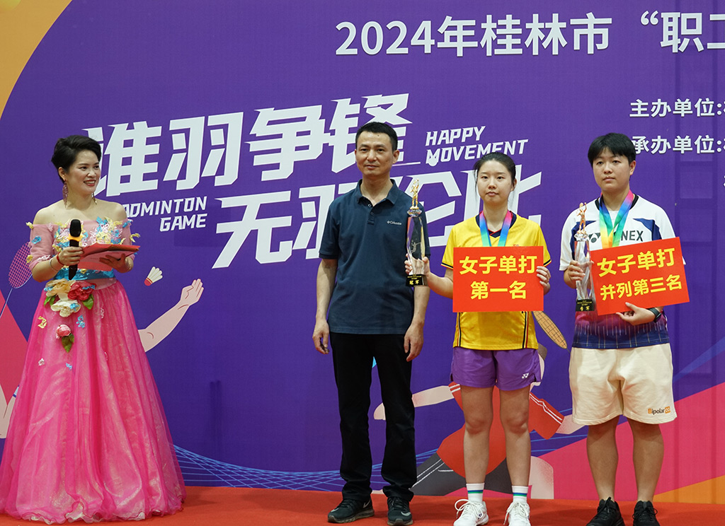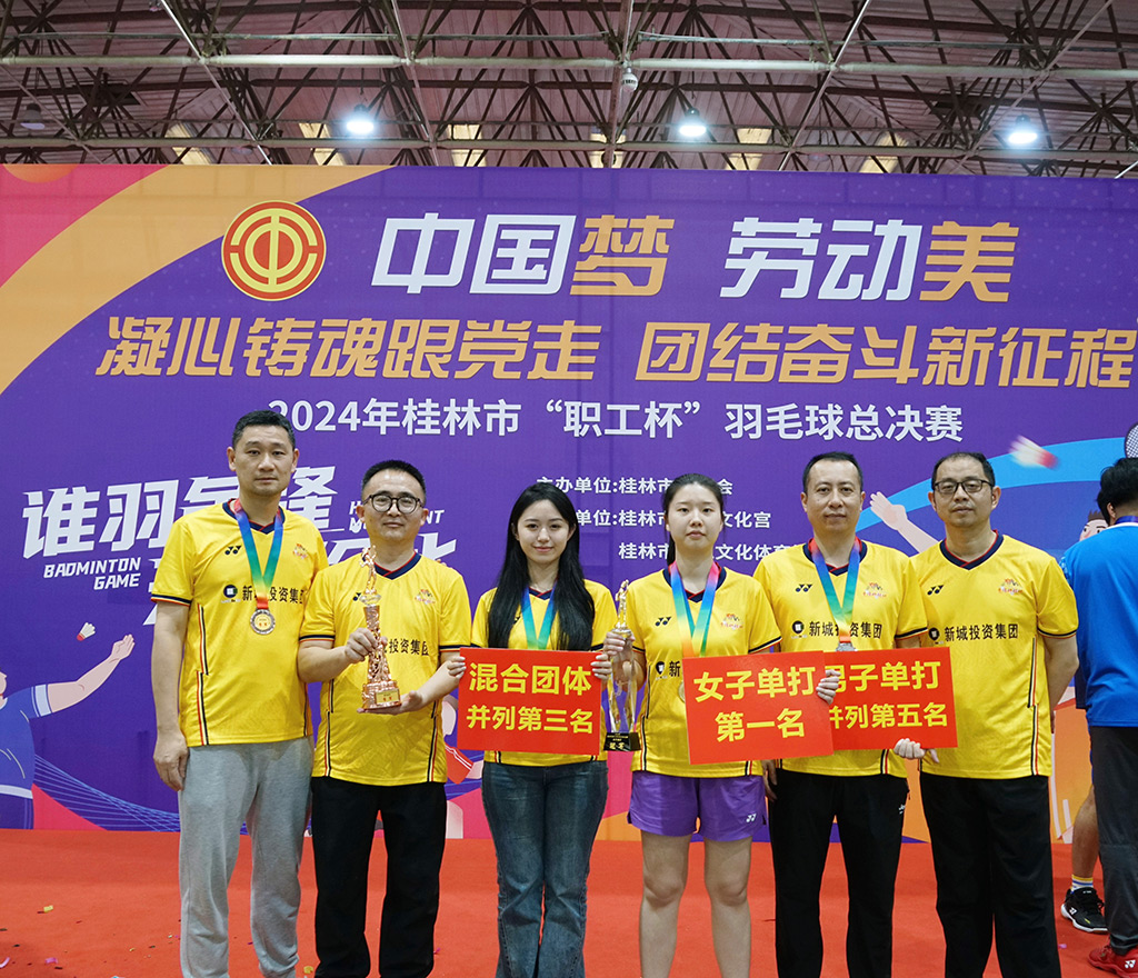 4月27日下午,由市總工會主辦的“中國夢 勞動美 凝心鑄魂跟黨走 團結奮進新征程”桂林市“職工杯”羽毛球比賽圓滿結束并舉行了頒獎儀式。新城投集團羽毛球隊經(jīng)過激烈角逐,在36支參賽隊伍中摘得多項榮譽:由公司黨委副書記(主持工作)、副董事長、總經(jīng)理朱毅擔任領隊,吳萍明、龔志祥、楊衛(wèi)來、張欣婭、唐蒙組成的新城投集團“黨旗映勝地”羽毛球隊榮獲團體第三名;張欣婭榮獲女子單打第一名;楊衛(wèi)來榮獲男子單打第五名的優(yōu)異成績。