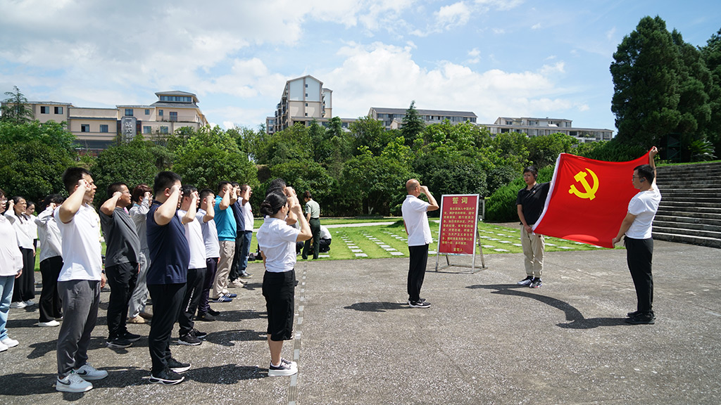青山處處埋忠骨,何須馬革裹尸還。黨員們首先來到湘江戰(zhàn)役紀(jì)念碑前,向烈士紀(jì)念碑敬獻(xiàn)花籃并深深地三鞠躬,以表對(duì)革命烈士最崇高的敬意,黨員同志面向黨旗重溫入黨誓詞,追憶入黨初心。