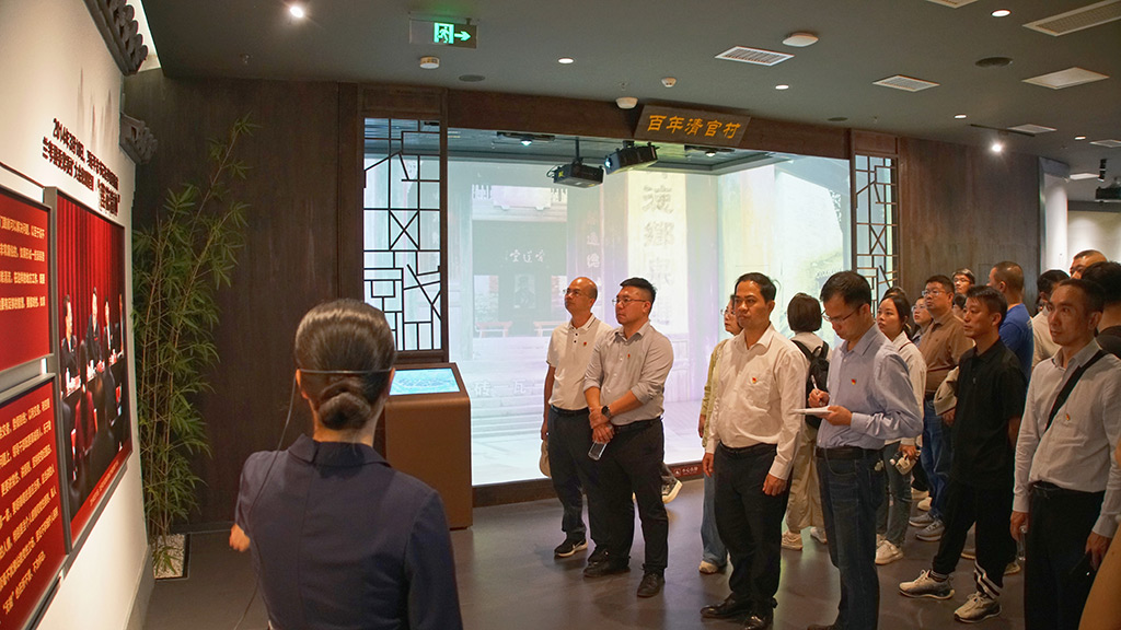 黨課結(jié)束后,駐桂林市工作隊與新城投集團全員在講解員的帶領(lǐng)下,依次參觀了廣西家教家風基地先賢家風、紅色家風、時代先鋒展廳。通過觀看一系列珍貴的歷史照片、泛黃的家書以及深刻的家訓,仿佛與古代先賢、革命前輩時空對話,領(lǐng)悟他們堅定信念和崇高品德,深刻感受家風家教在傳承紅色基因、弘揚革命精神中的重要作用。大家紛紛表示,基地中蘊含的家教智慧、廉政思想和優(yōu)良家風,值得如今每一個“小家”借鑒弘揚。陳湛林以《靈川古韻頌家風》為題賦詩一首,表達自己的所思所想、所感所悟?!办`川大地映晴空,江頭村內(nèi)訪古蹤。家風淳厚傳千古,示范基地蘊德濃。碧瓦紅墻話廉政,碑文石刻醒心胸。子孫后代當自勵,清廉家訓永相從。”