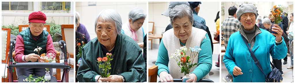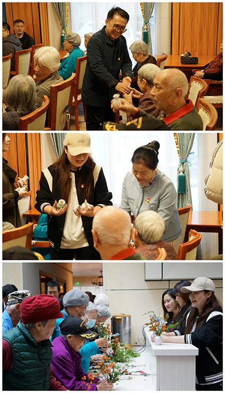 黨課結(jié)束后,老人們在黨員志愿者的陪伴下開展插花活動(dòng)。志愿者們將一個(gè)個(gè)小巧精致的花瓶親手送到每一位老人的手中。在一片歡聲笑語中,大家一邊享受插花樂趣,一邊分享彼此心得體會,攜手創(chuàng)作出一件件精美的插花作品。看著自己親手制作的作品,老人們臉上流露出深深的成就感和自豪感。