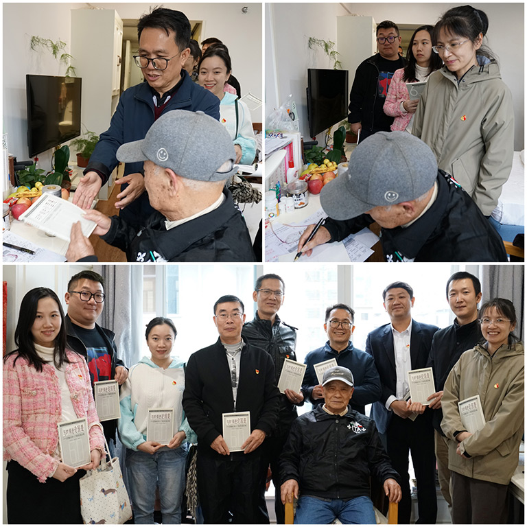 活動(dòng)圓滿結(jié)束后,吳仲先爺爺熱情邀請新城投集團(tuán)第三黨支部的志愿者們來到他的房間。大家圍在吳爺爺身邊親切交談,關(guān)心地詢問他的身體狀況和生活情況。吳爺爺親手把他編著的書籍——《與時(shí)俱進(jìn)論國是》贈予每一位志愿者,并在書上寫下溫馨寄語。這些飽含深情的親筆贈言,流露出吳爺爺堅(jiān)強(qiáng)的意志、奉獻(xiàn)的精神和始終如一的初心,讓在場的每個(gè)人都深受感動(dòng)。