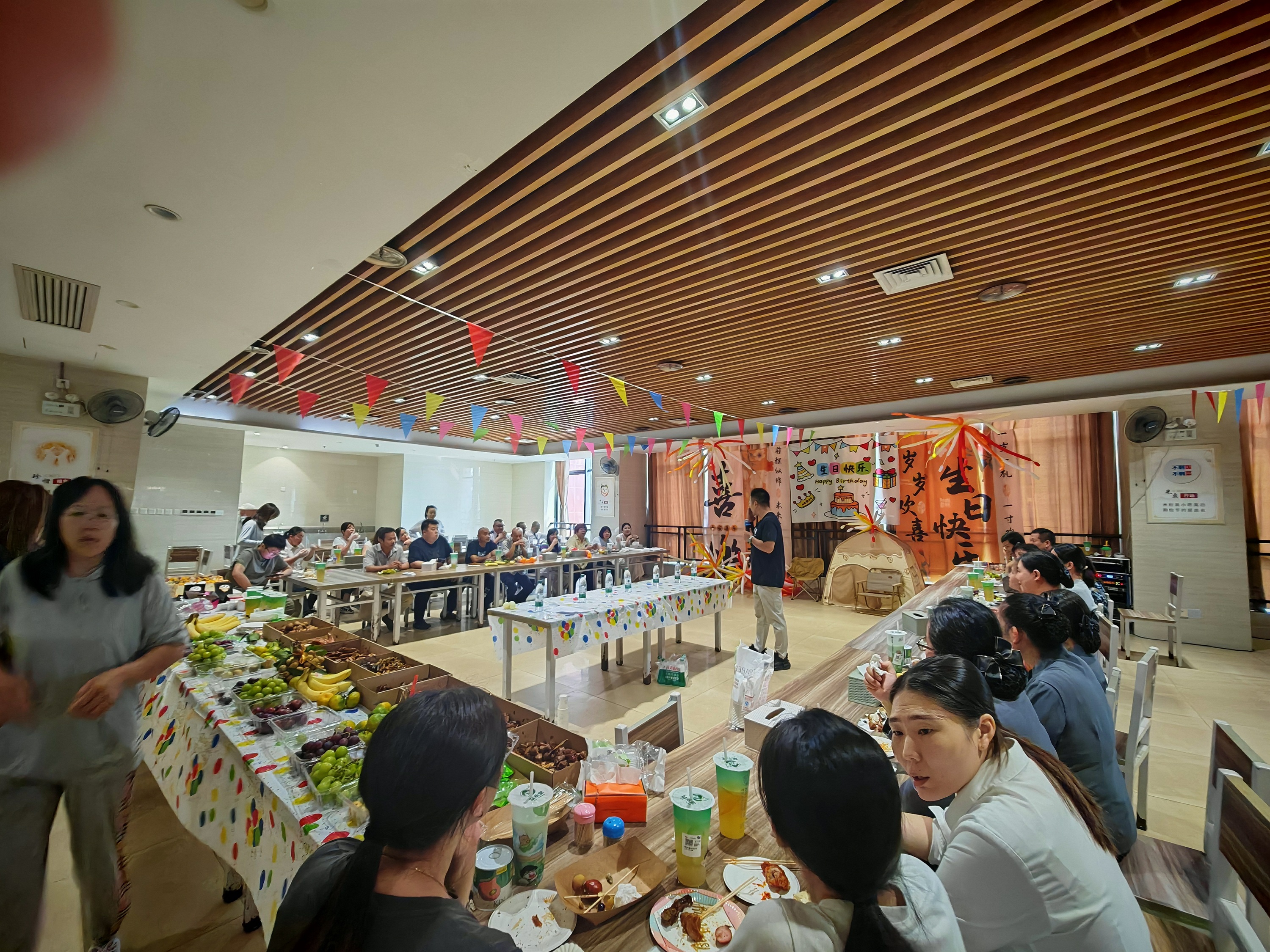 為了給壽星們留下難忘的回憶,建設(shè)分會(huì)早早開始準(zhǔn)備。從蛋糕、飲品、小吃到小禮品,每一處都體現(xiàn)著貼心;會(huì)場(chǎng)布置則洋溢著秋日氣息,簽到區(qū)、下午茶區(qū)、游戲區(qū)一應(yīng)俱全。彩帶與氣球點(diǎn)綴下的現(xiàn)場(chǎng),讓大家一踏入就感受到濃濃的節(jié)日氛圍。