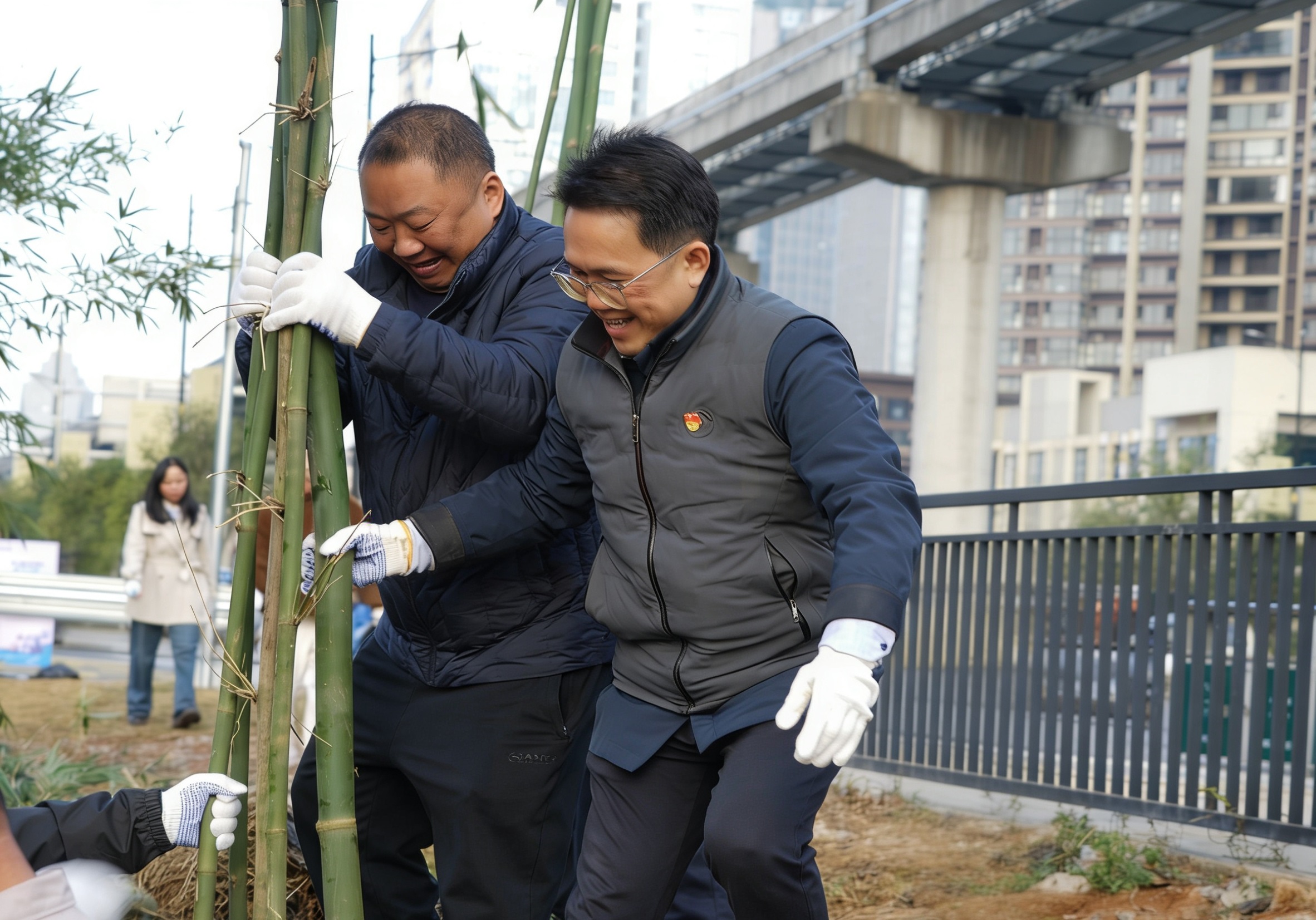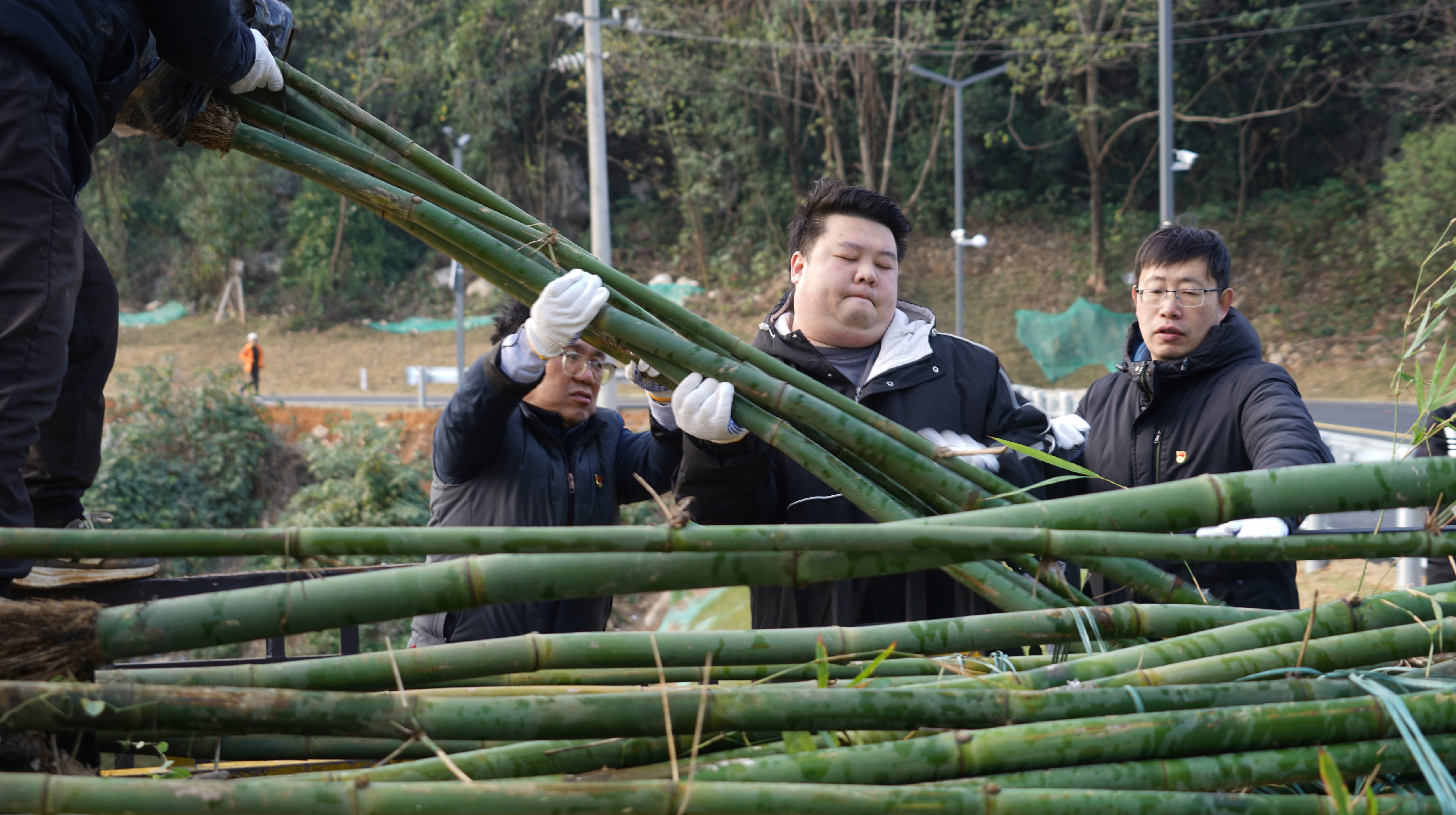 冬日的微涼絲毫未減勞動熱情,現(xiàn)場一派熱火朝天的實干景象,經(jīng)過近2小時奮戰(zhàn),一片片新竹在步道旁挺立,翠綠竹苗與整潔步道相映成趣,既為山水街人行步道增添“竹韻”生機,更讓生態(tài)美景與便民需求深度融合,為市民打造出更宜行、更宜賞的游園環(huán)境。