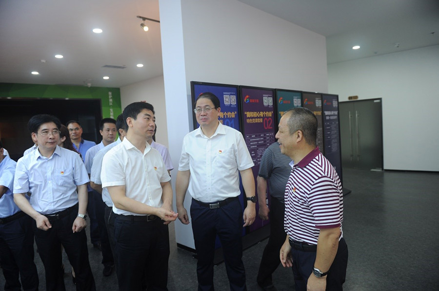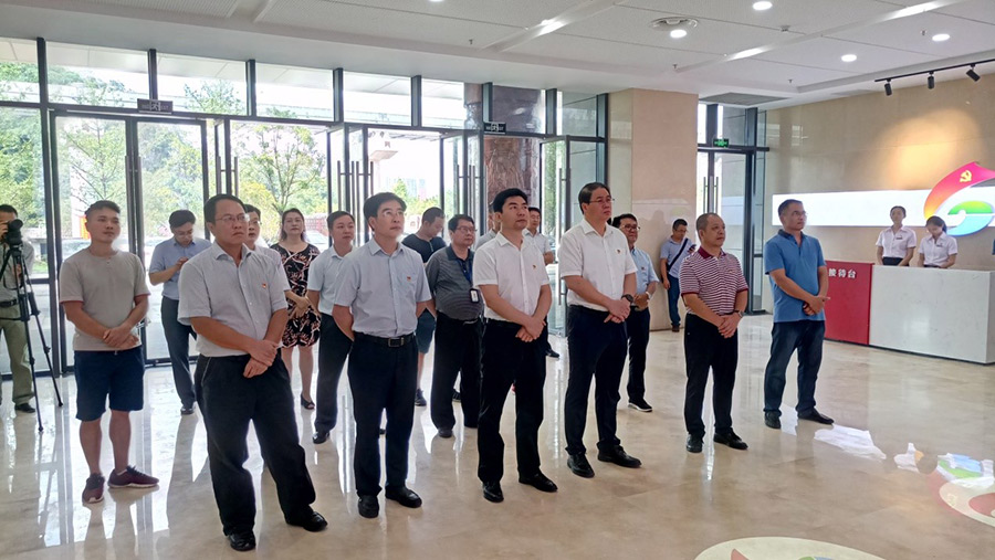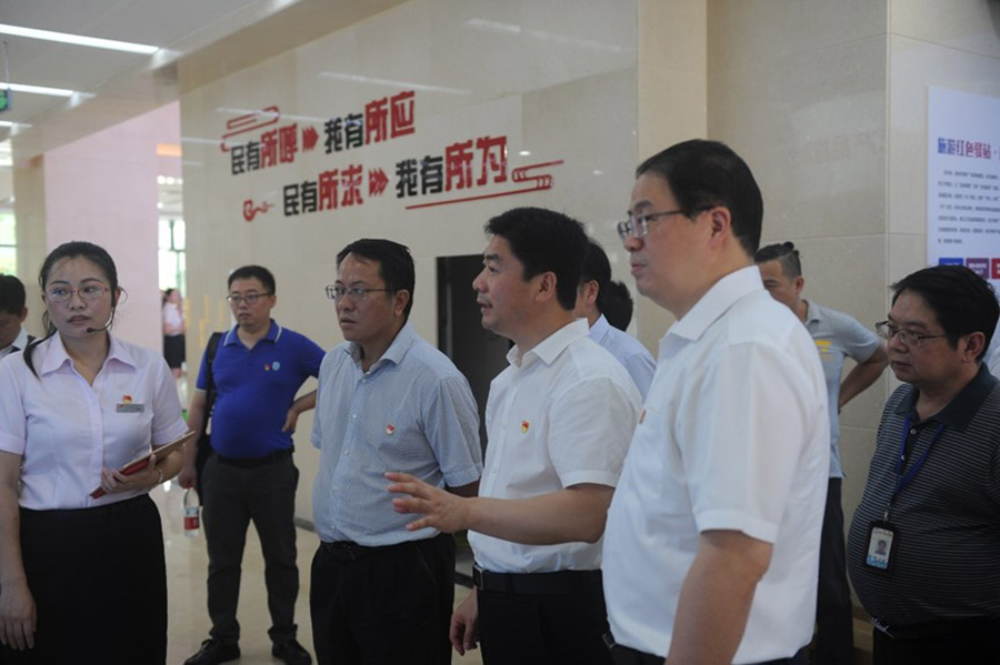2019年7月1日,在中國共產黨建黨98周年到來之際,桂林市委副書記白松濤一行專程到桂林市黨群服務中心調研指導試運行情況。市委常委、組織部部長、市黨群服務中心建設工作領導小組組長彭東光陪同調研。