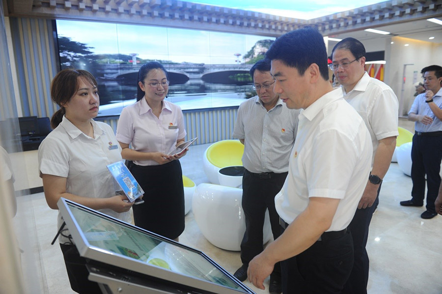 白松濤一行先后參觀了黨群業(yè)務受理區(qū)、便民生活服務區(qū)、黨史黨建工作展示區(qū)、智慧黨建區(qū)、黨群組織活動區(qū)等服務區(qū)塊以及臨桂新區(qū)、新城投資集團黨建展示廳,詳細了解了黨群服務中心的功能和試運行情況。調研過程中白松濤對市黨群服務中心的建設工作給予肯定,對各廳的打造效果及建設速度表示認可,同時強調要按照自治區(qū)人大常委會副主任,桂林市委書記、市人大常委會主任趙樂秦對中心提出“追求卓越”的目標,著力將市黨群服務中心,打造成為一個開放式、實體化、集約型、共享性、先鋒色的城市基層黨建紅色新地標,做到“廣西領先、全國一流”。